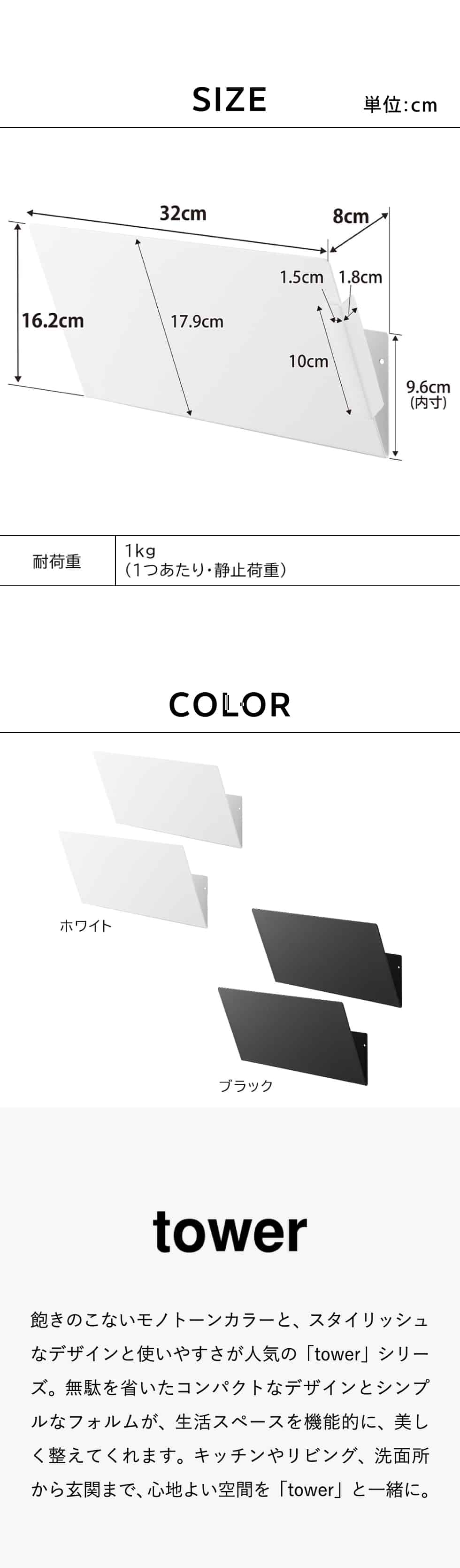 商品サイズ 本体:W32×D8×H16.2cm(1つあたり) 本体背面(設置面サイズ):W32×H9.6cm |