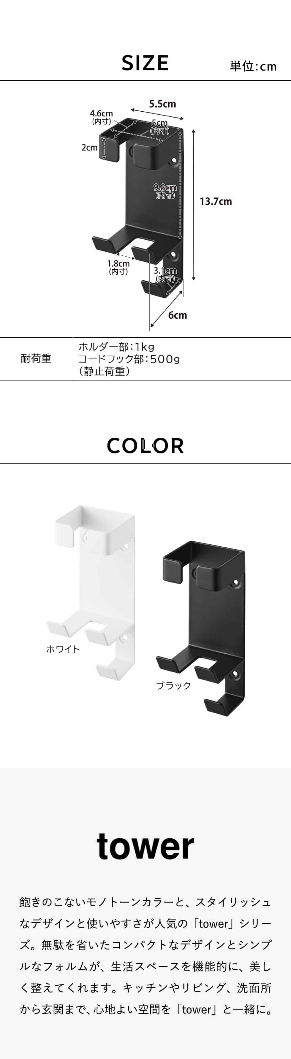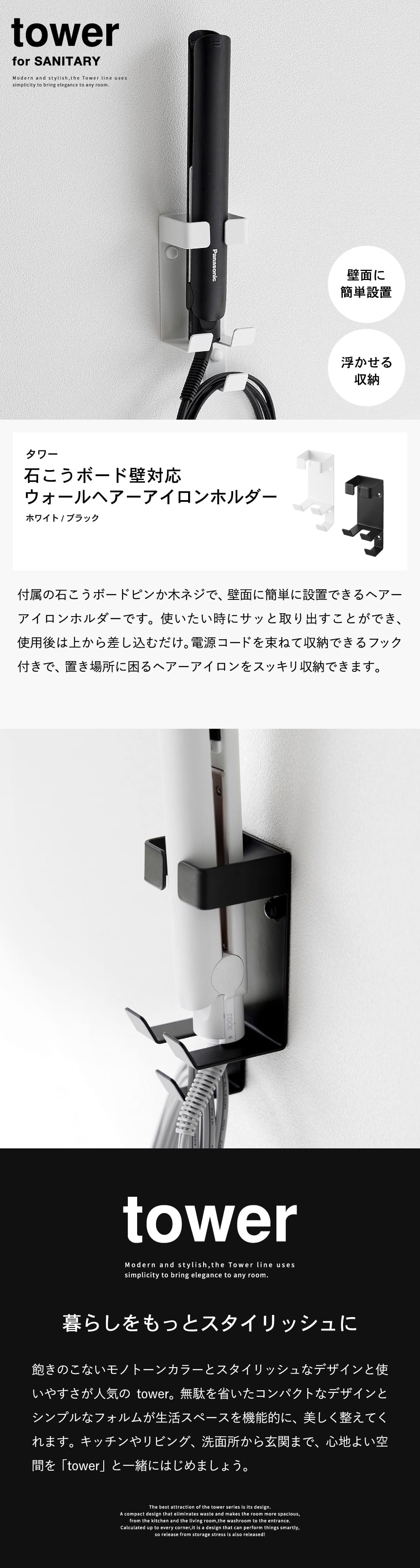 山崎実業 tower ウォールヘアーアイロンホルダー タワー 石こうボード壁対応 公式 1345 1346 / ヘアアイロン 収納 スタンド 洗面所 浮かせる収納 壁面収納 yamazaki タワーシリーズ JGS / ホワイト