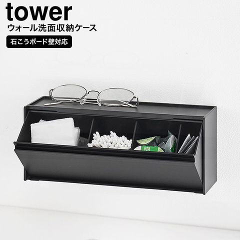 山崎実業 tower ウォール洗面収納ケース タワー 石こうボード壁対応 公式 1355 1356 送料無料 / コスメ収納 洗面台 洗面所 整理 整頓 コットン 綿棒 コンタクト 浮かせる収納 タワーシリーズ yamazaki / ブラック