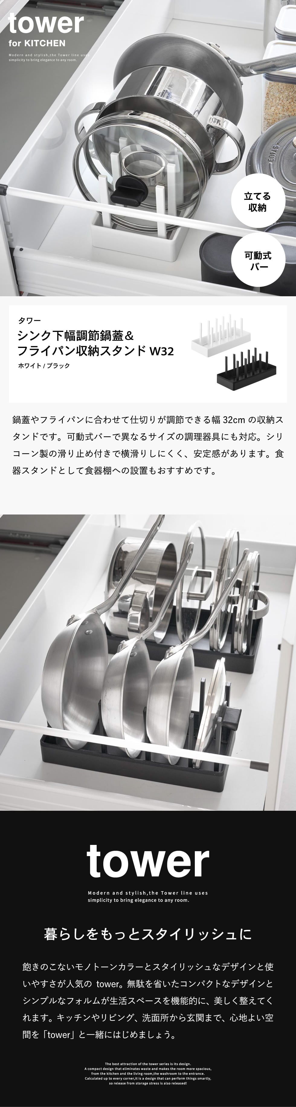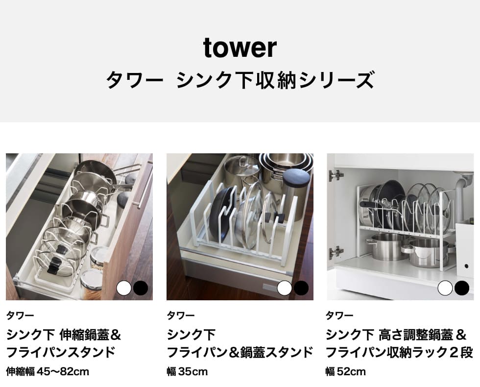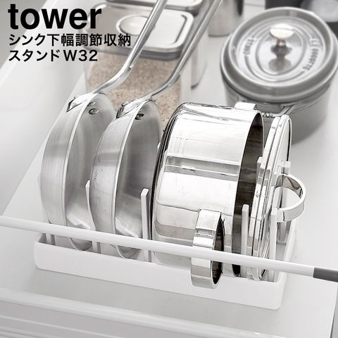 山崎実業 tower シンク下幅調節鍋蓋&フライパン収納スタンド タワー W32 公式 1359 1360 送料無料 / 幅32cm キッチン収納 蓋 フライパン 鍋 スタンド ディッシュラック 可動式 調理器具 収納 / ホワイト