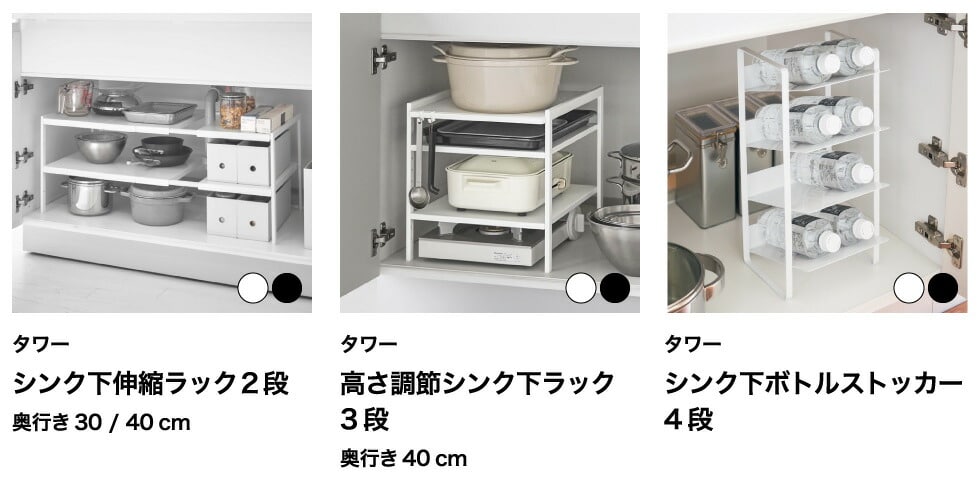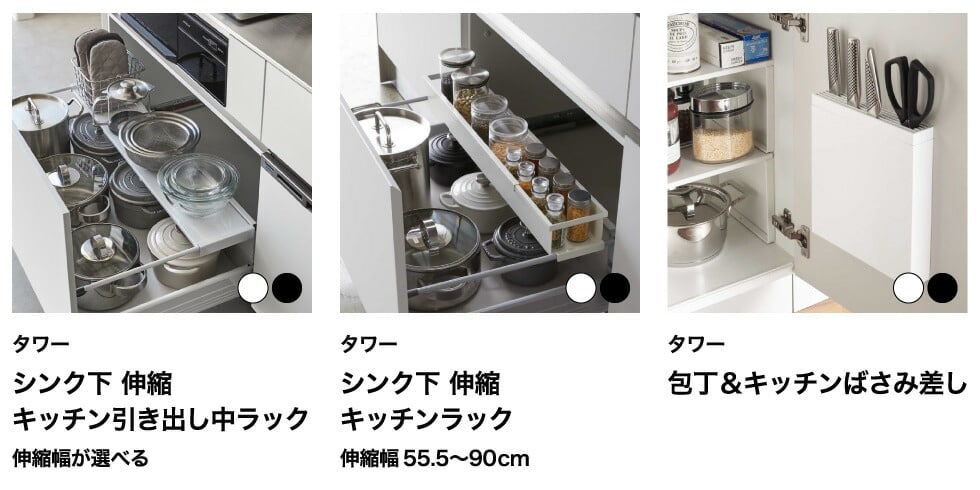 | シンク下幅調節鍋蓋&フライパン収納スタンド タワー W32 |