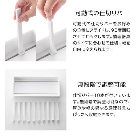 品質表示 本体・仕切りバー×10:ABS樹脂 滑り止め:シリコーンゴム |