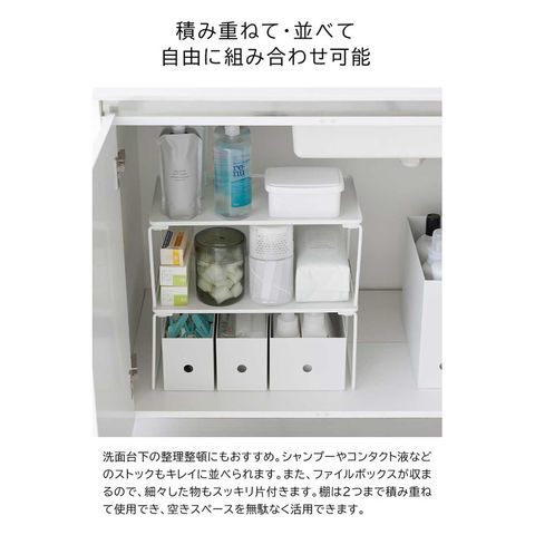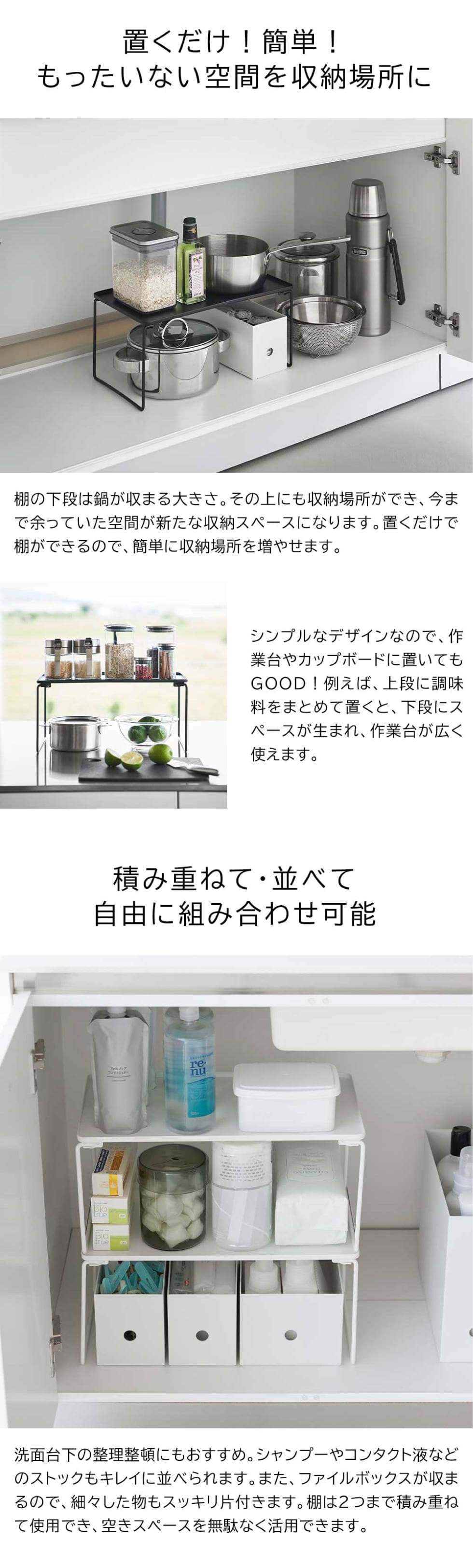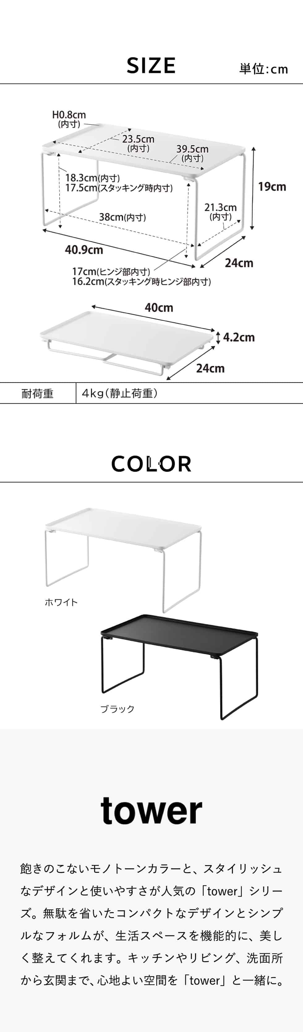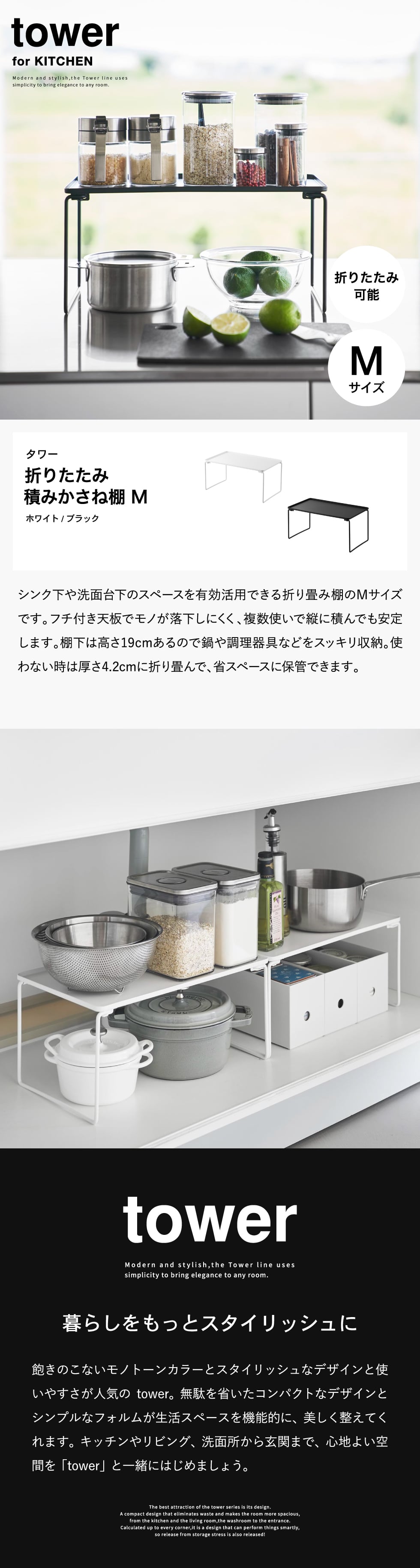 山崎実業 tower 折り畳み積み重ね棚 タワー M 公式 1367 1368 送料無料 / キッチン シンク下 収納 洗面所 隙間収納 コンロ奥ラック 鍋置き 調味料ラック タワーシリーズ yamazaki / ホワイト