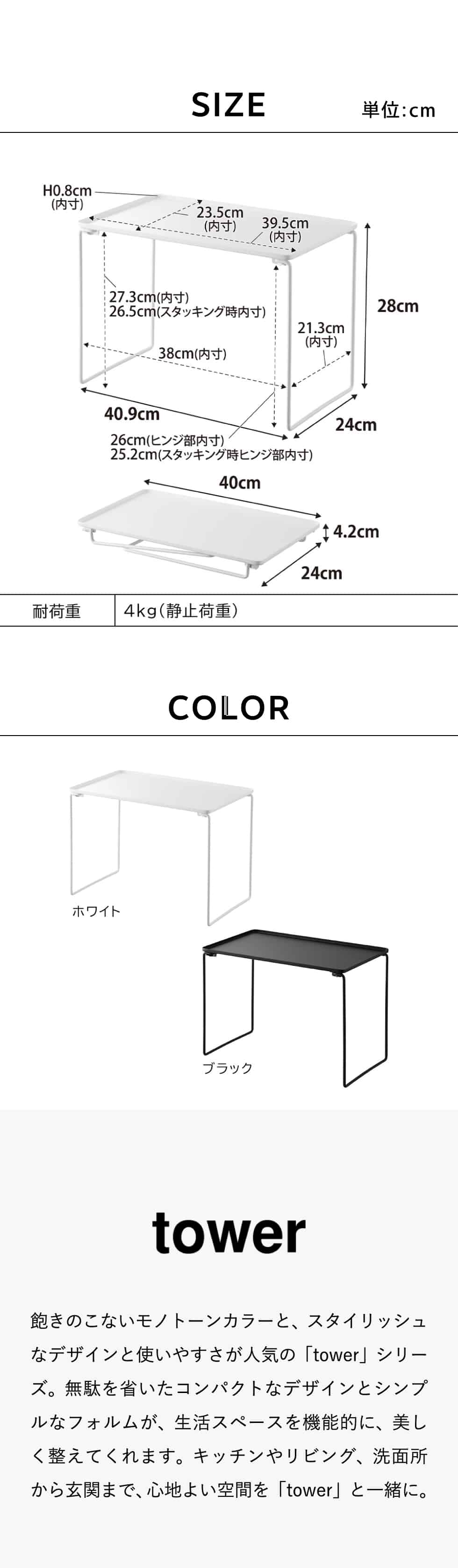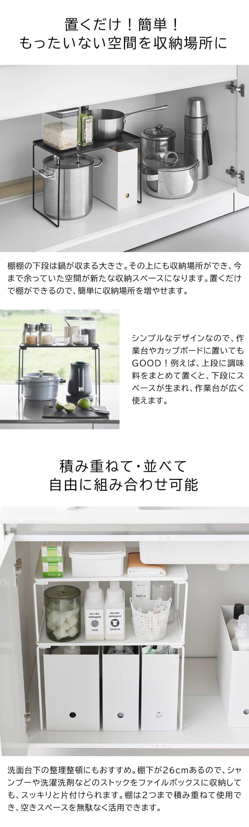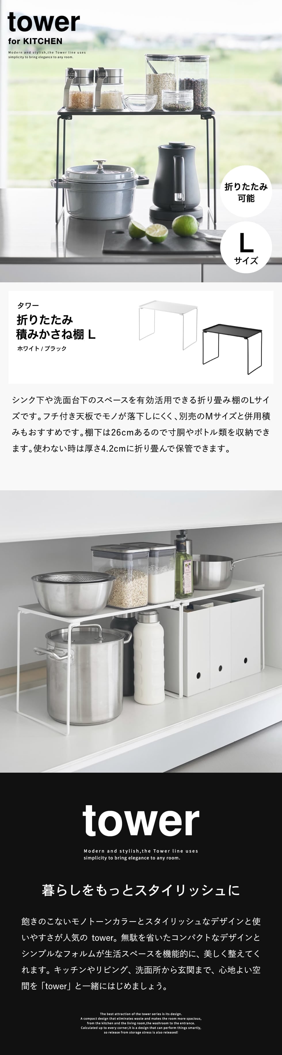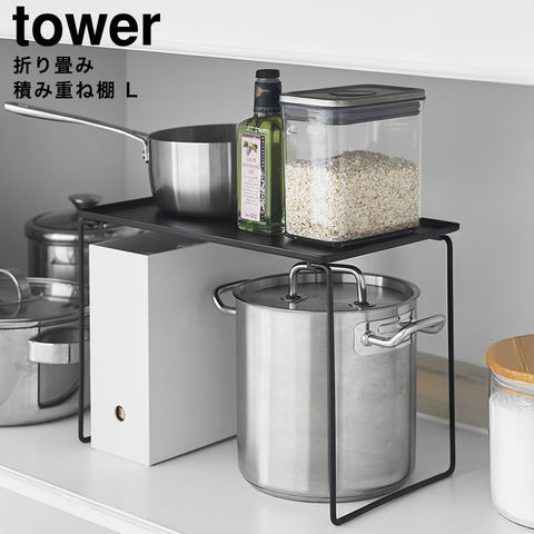 山崎実業 tower 折り畳み積み重ね棚 タワー L 公式 1369 1370 送料無料 / キッチン シンク下 収納 洗面所 隙間収納 コンロ奥ラック 鍋置き 調味料ラック タワーシリーズ yamazaki / ブラック