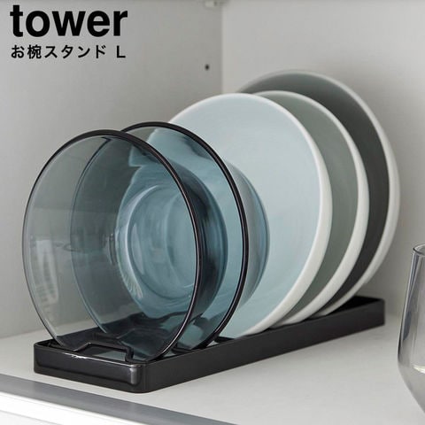 山崎実業 tower お椀スタンド タワー L 公式 1373 1374 / 食器ラック 食器棚 シンク下 キッチン 用品 収納 どんぶり鉢 深皿 ボウル お皿立て スタンド 整理 整頓 タワーシリーズ / ブラック