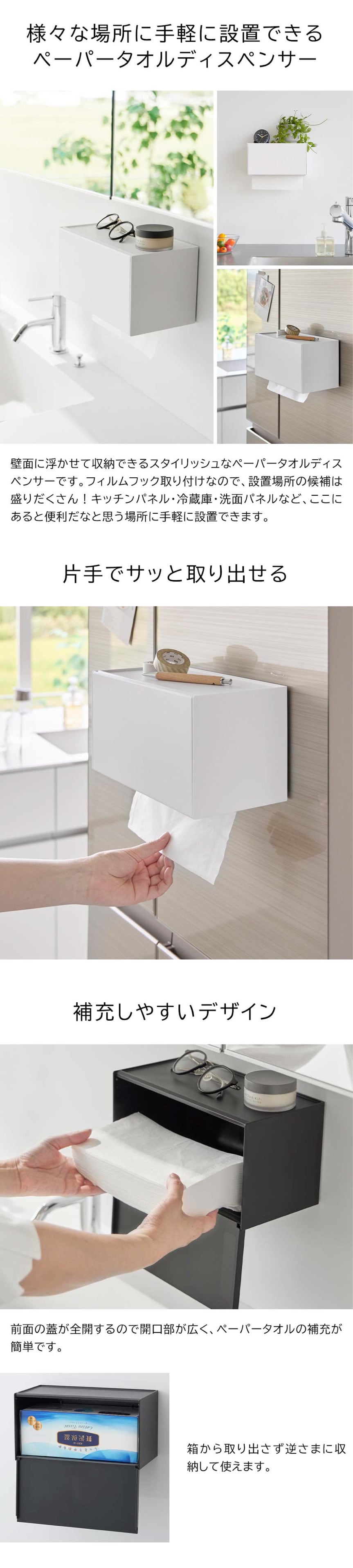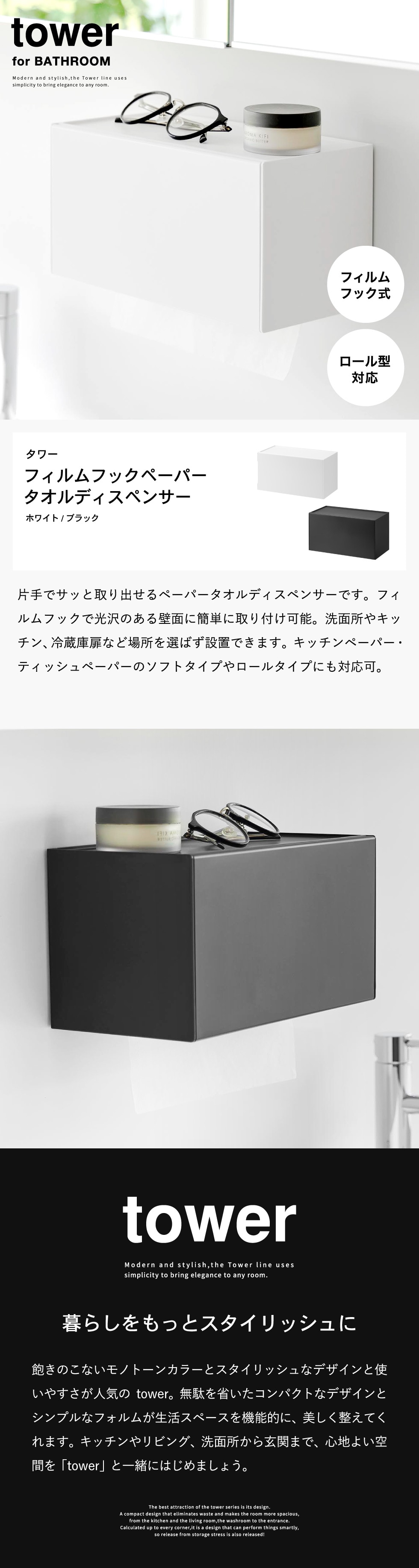 山崎実業 tower フィルムフックペーパータオルディスペンサー タワー 公式 1377 1378 送料無料 / ティッシュボックス キッチンペーパーホルダー キッチン 洗面所 小物置き タワーシリーズ yamazaki / ホワイト