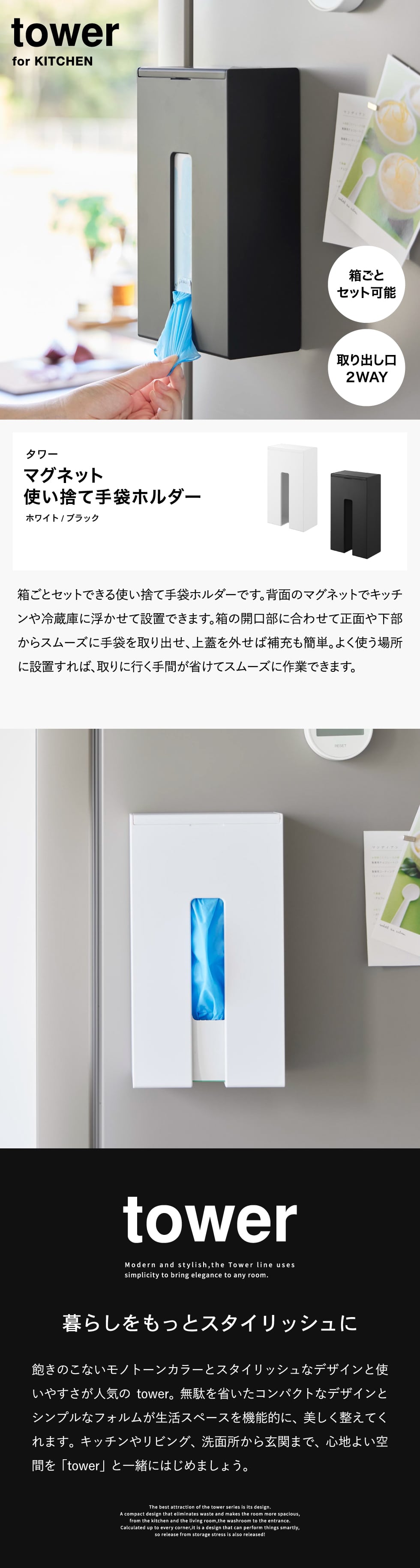 山崎実業 tower マグネット使い捨て手袋ホルダー タワー 公式 1379 1380 送料無料 / ビニール手袋 キッチン収納 冷蔵庫横 壁掛け 隙間収納 キッチンツール タワーシリーズ yamazaki JGS / ブラック
