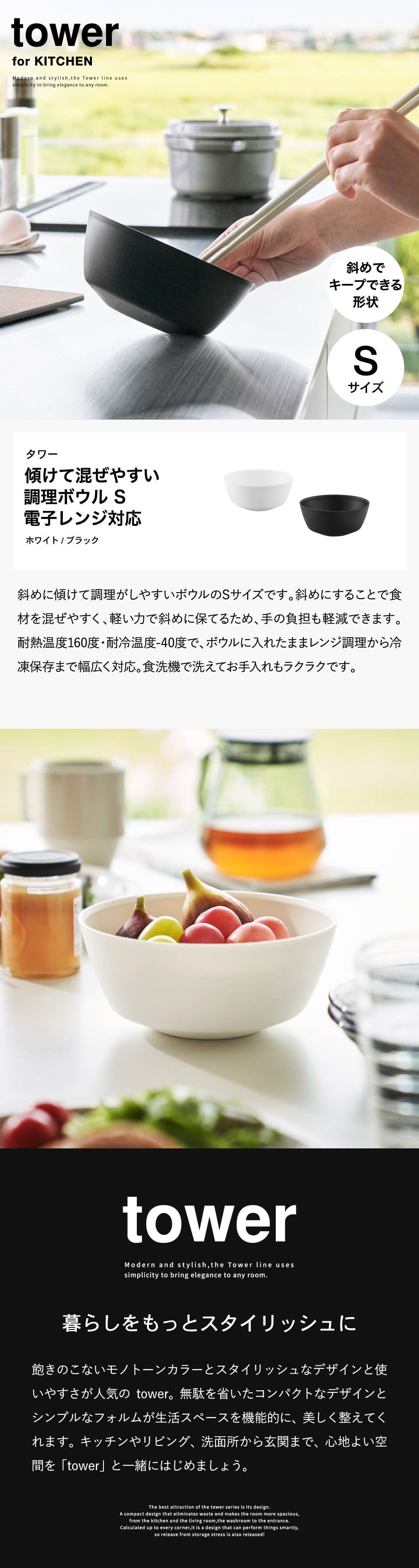 | 傾けて混ぜやすい調理ボウル タワー S 電子レンジ対応 |