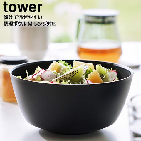 山崎実業 tower 傾けて混ぜやすい調理ボウル タワー M 電子レンジ対応 公式 1387 1388 / 1.8L キッチンボウル ボール プラスチック 耐熱 耐冷 冷凍 食洗機 調理器具 キッチンツール JGS / ブラック