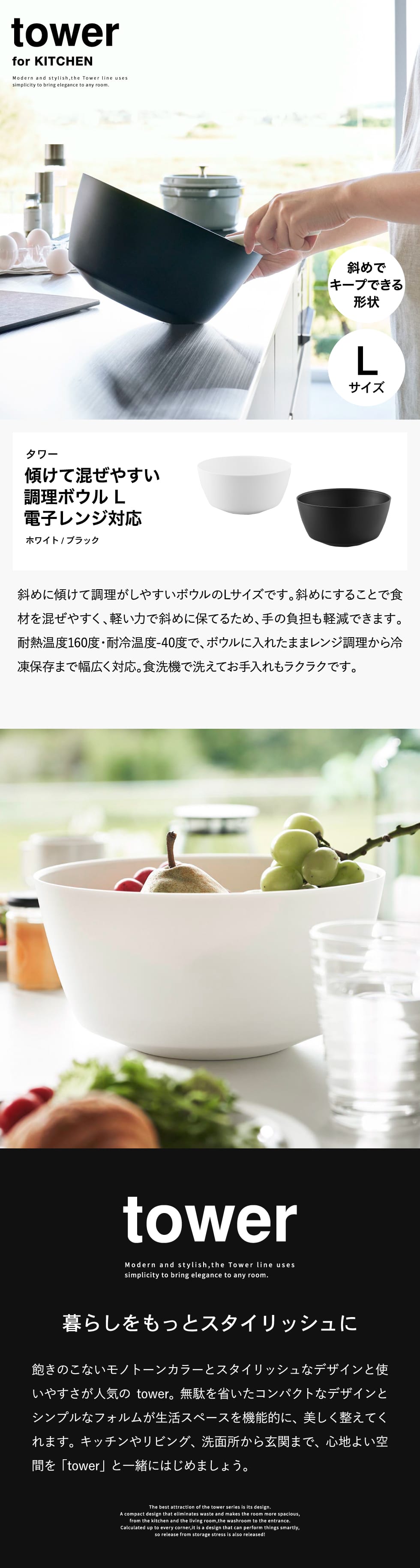 | 傾けて混ぜやすい調理ボウル タワー L 電子レンジ対応 |
