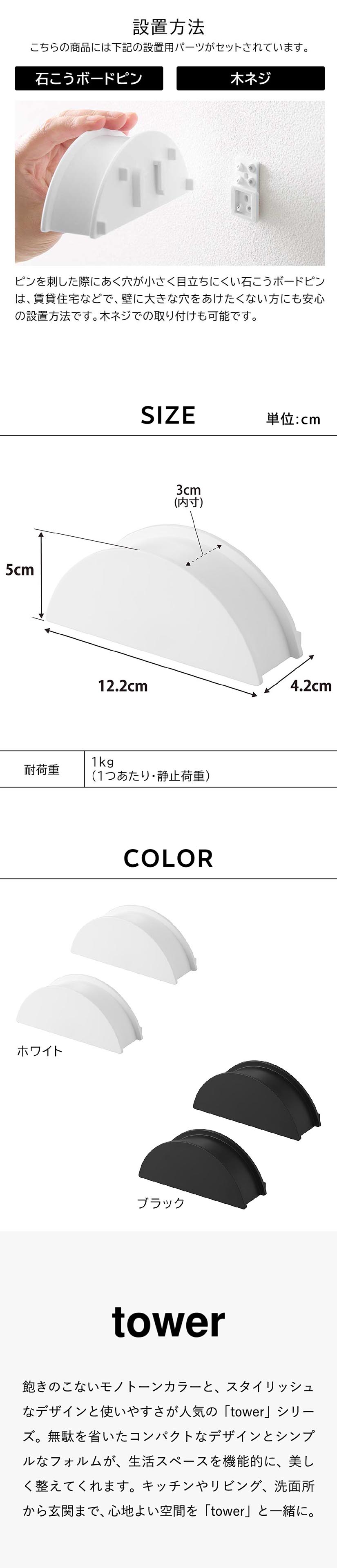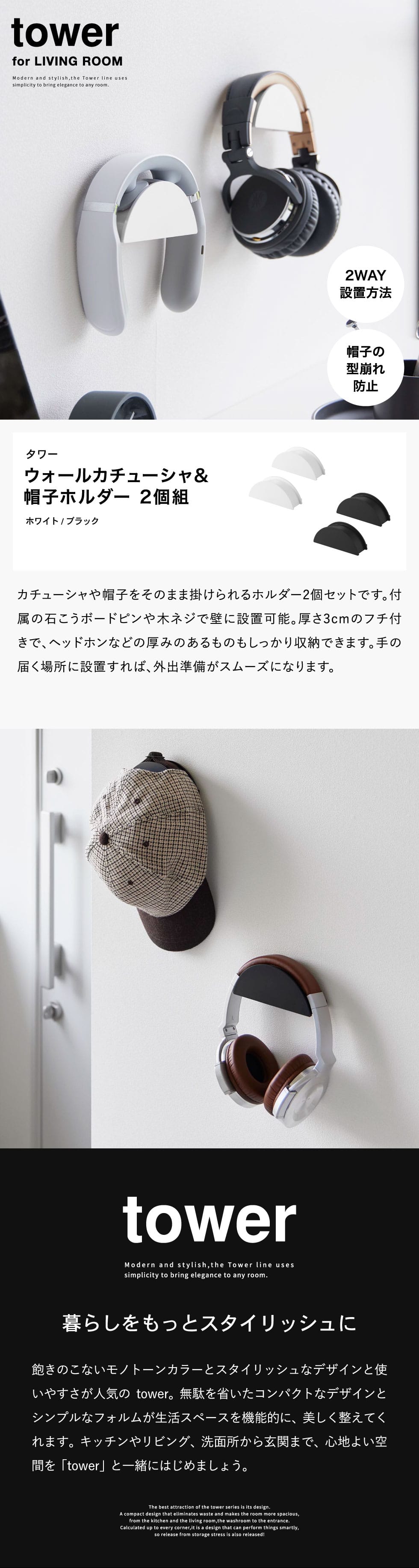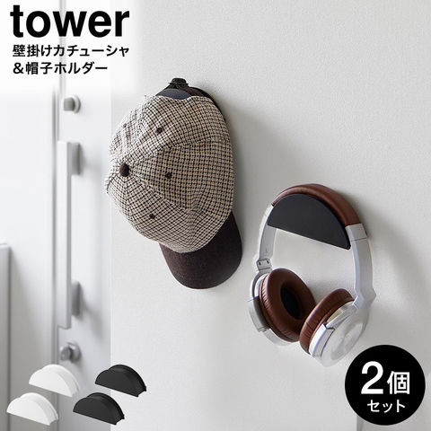 山崎実業 tower ウォールカチューシャ&帽子ホルダー タワー 2個組 石こうボード壁対応 公式 1889 1890 / ヘッドホン ヘッドセット キャップ 壁面 収納 ディスプレイ タワーシリーズ JGS dej / ブラック