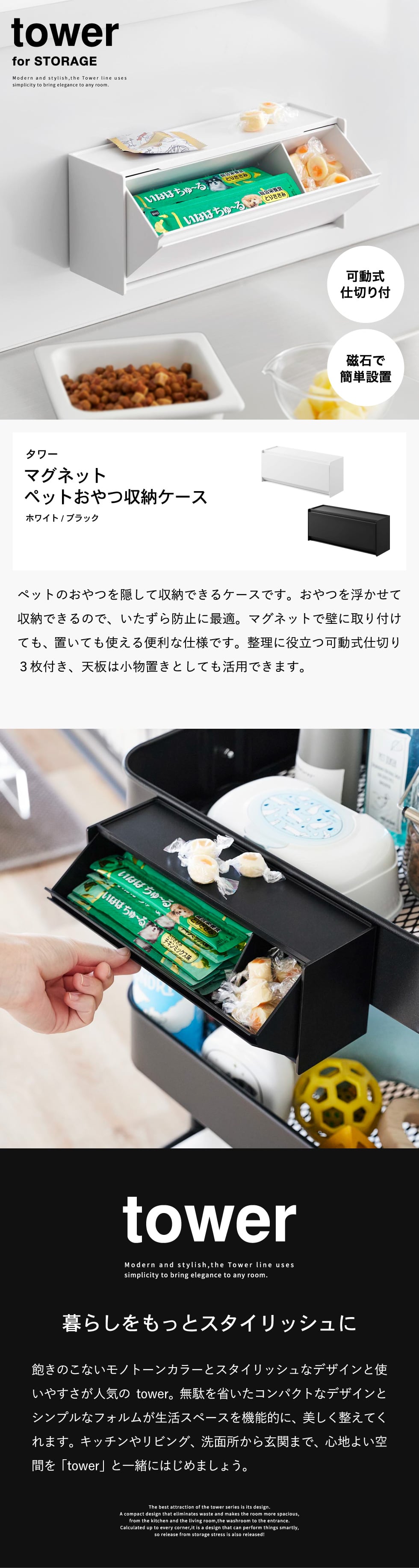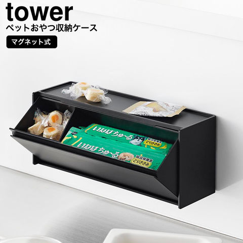 山崎実業 tower マグネットペットおやつ収納ケース タワー 公式 1983 1984 送料無料 / ペット フードストッカー 犬 ネコ 猫 ペット用品 ペットフード 浮かせる収納 小物置き タワーシリーズ / ブラック