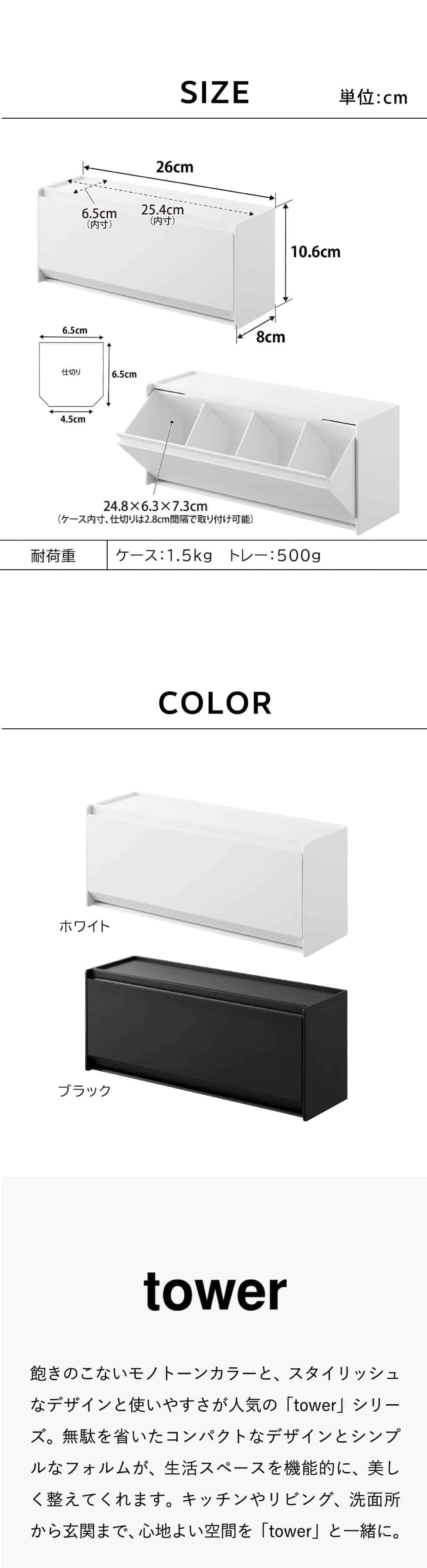 品質表示 本体・仕切り×3:ABS樹脂 マグネット 滑り止め:シリコーンゴム |
