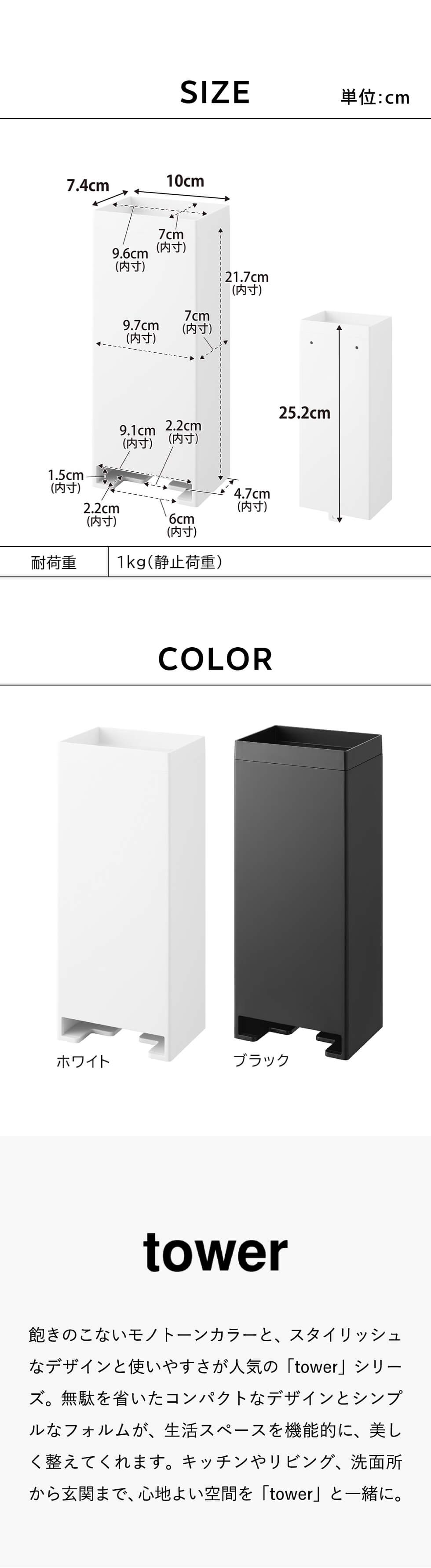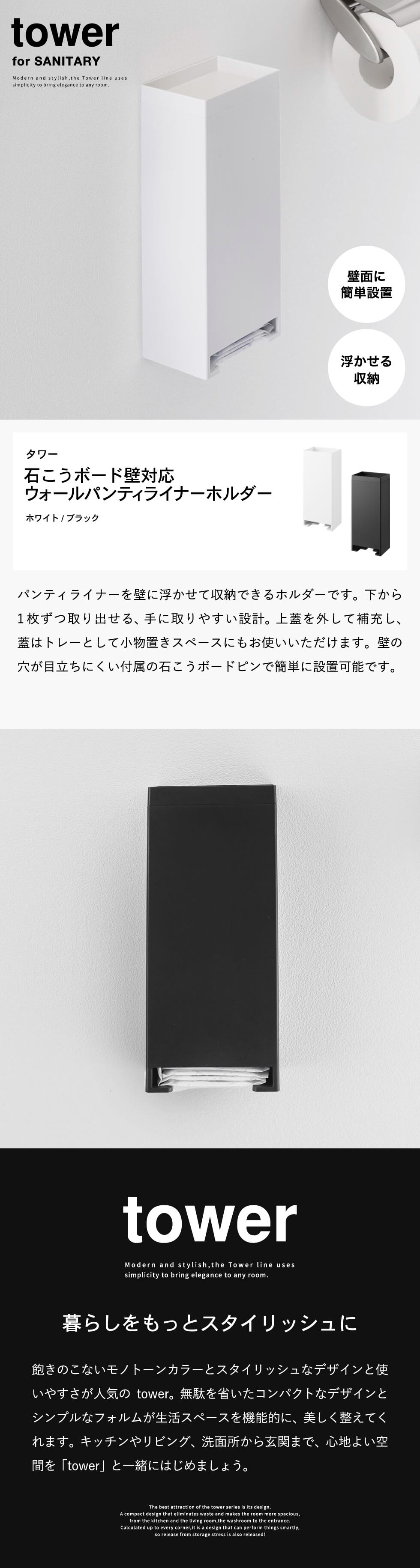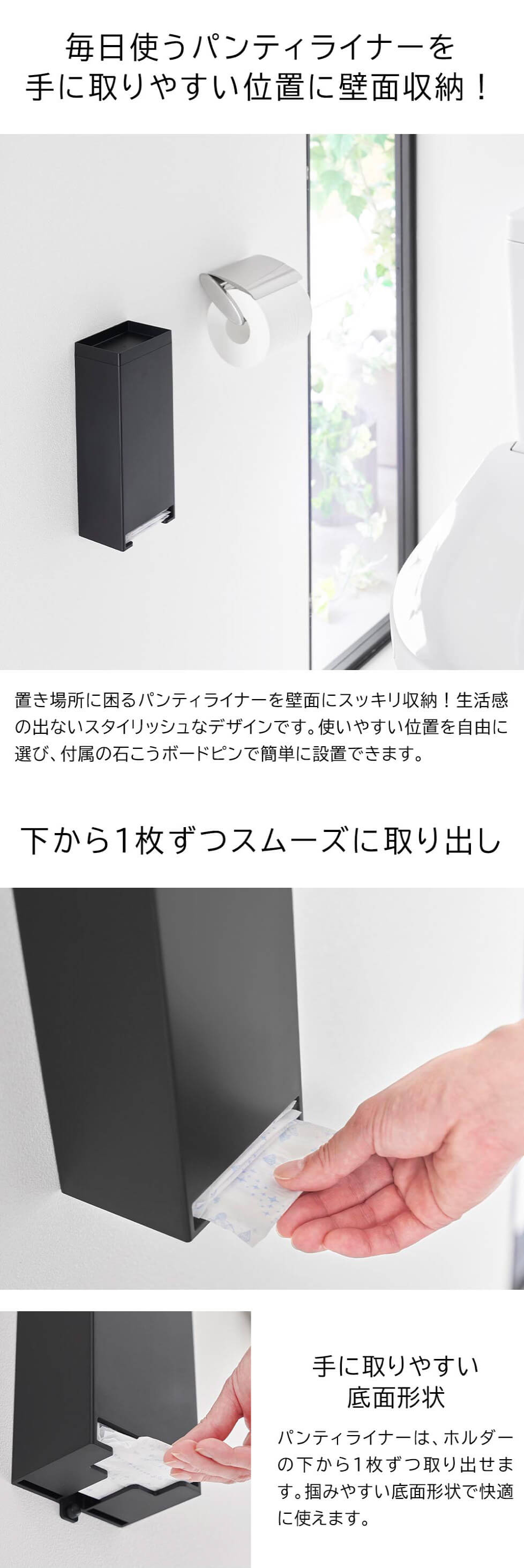 山崎実業 tower ウォールパンティライナーホルダー タワー 石こうボード壁対応 公式 3080 3081 / トイレ 生理用品 おりものシート 収納 浮かせる収納 yamazaki タワーシリーズ / ブラック