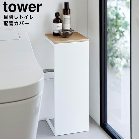 山崎実業 tower 目隠しトイレ配管カバー タワー 公式 5223 5224 送料無料 / トイレ収納 電源コード 配線 ホコリ対策 省スペース 小物置き yamazaki タワーシリーズ / ホワイト