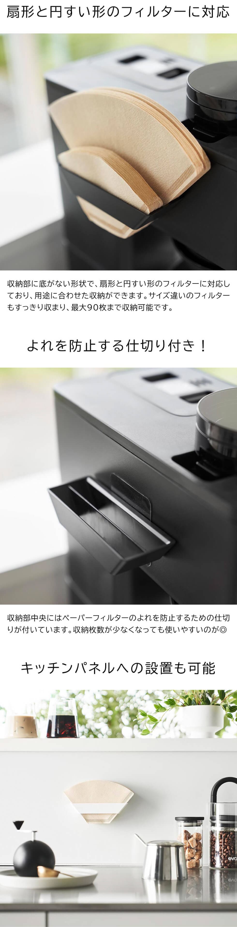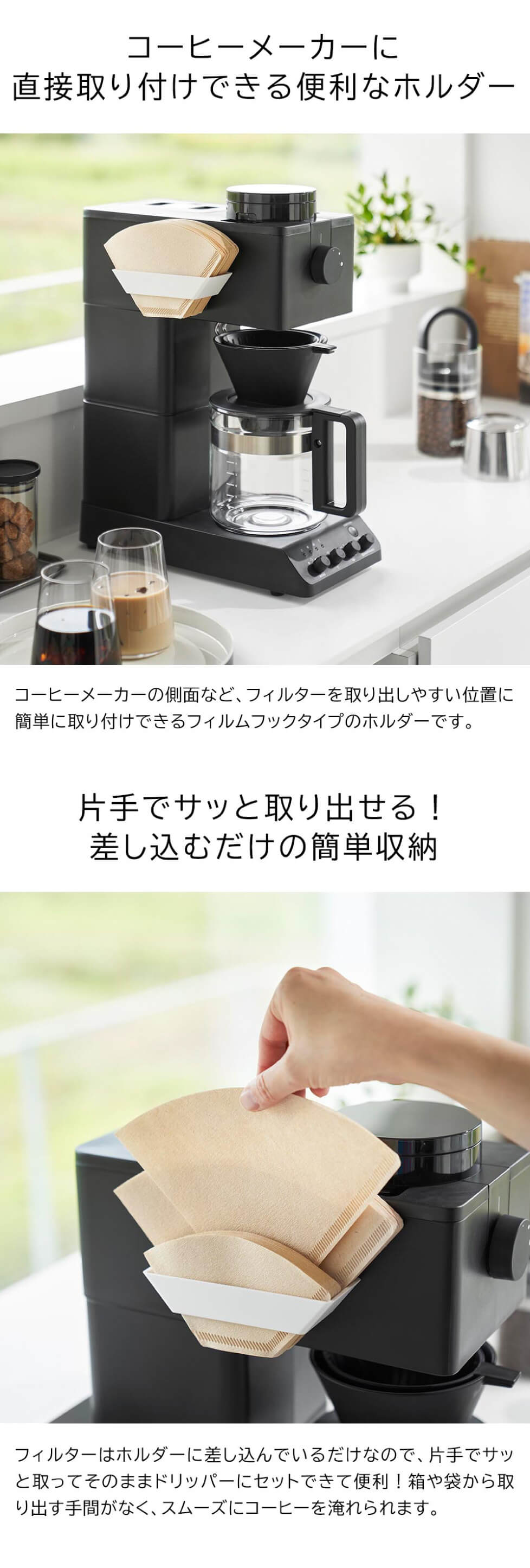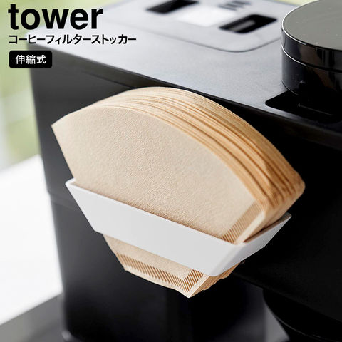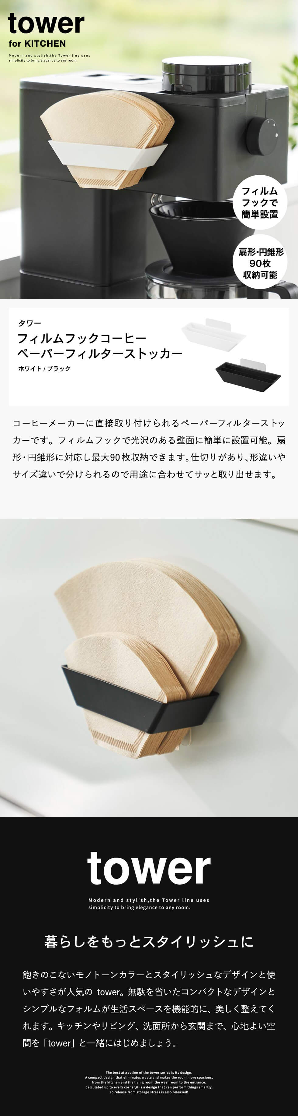 山崎実業 tower フィルムフックコーヒーペーパーフィルターストッカー タワー 公式 8244 8245 / コーヒーフィルターホルダー 扇形 円すい形 円錐形 紙フィルター 90枚 収納 / ホワイト