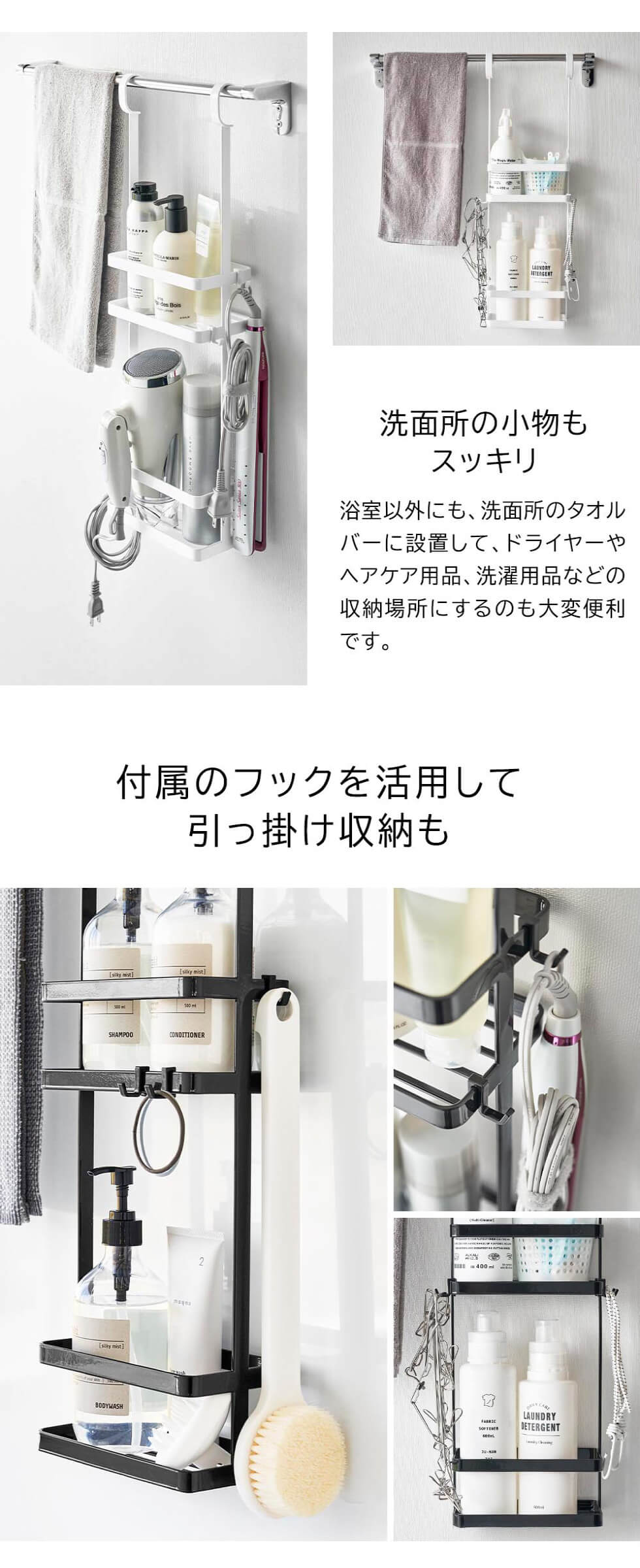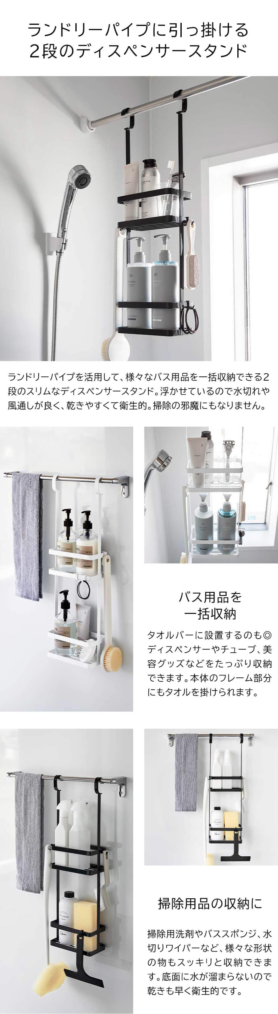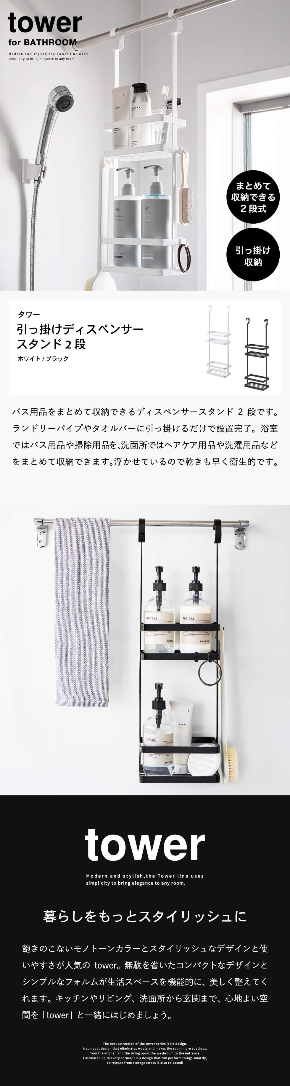 山崎実業 tower 引っ掛けディスペンサースタンド タワー 2段 公式 8460 8461 送料無料 / バスルーム ラック 浴室 収納 シャンプー 浮かせる収納 タワーシリーズ yamazaki / ホワイト
