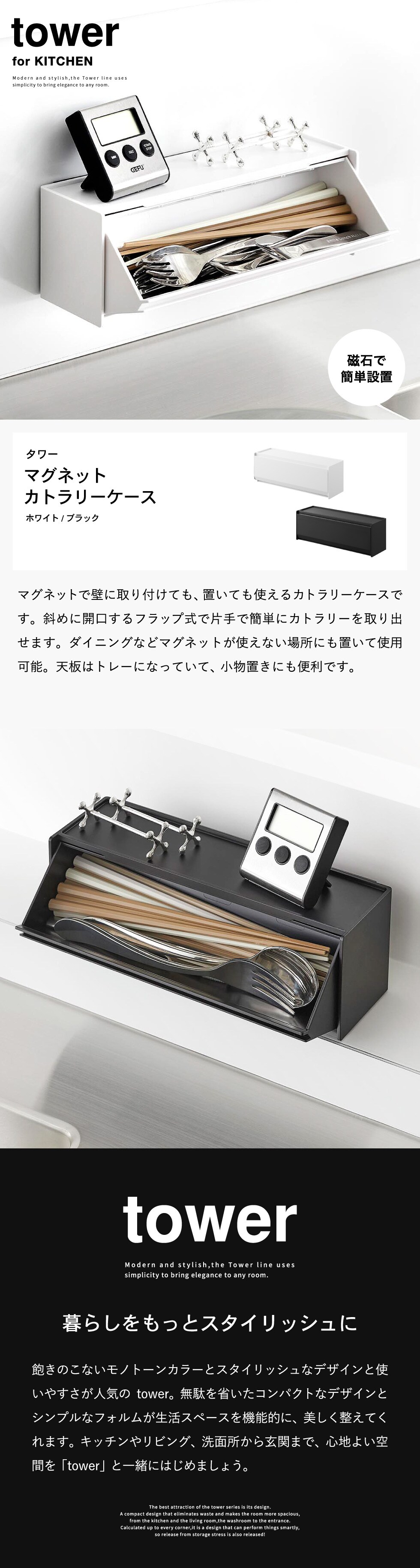 山崎実業 tower マグネットカトラリーケース タワー 公式 8462 8463 送料無料 / カトラリー収納 箸入れ はし 箸 スプーン フォーク 冷蔵庫横 食卓 ダイニング ふた付き 浮かせる収納 キッチンツール JGS / ブラック