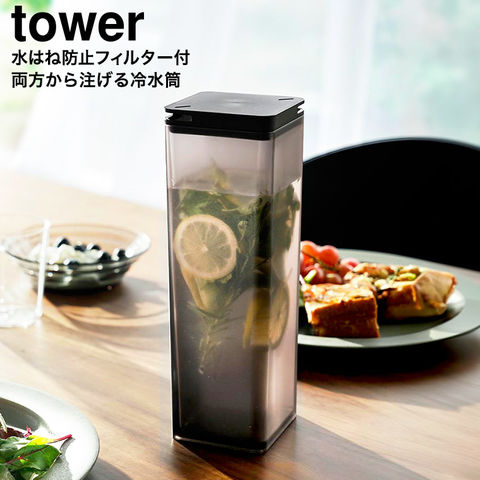 山崎実業 tower 水はね防止フィルター付き両方から注げる冷水筒 タワー 公式 10237 10238 / 1.2L ピッチャー 冷蔵庫内 収納 麦茶ポット 麦茶入れ 洗いやすい 食洗機対応 yamazaki タワーシリーズ / ブラック