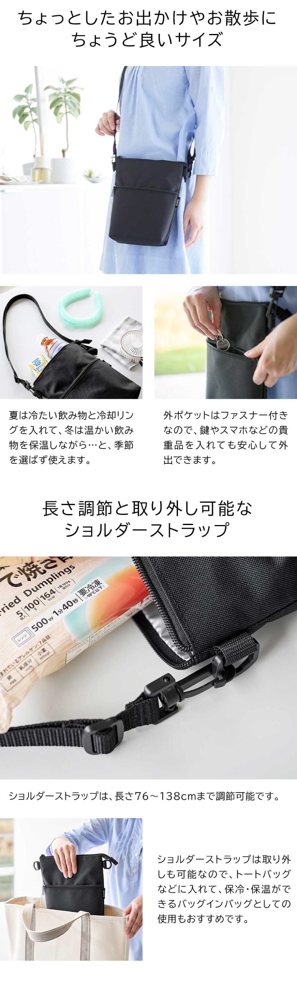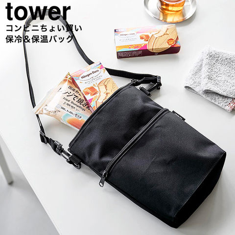 山崎実業 tower コンビニちょい買い保冷&保温バッグ タワー 公式 10165 10166 送料無料 / 斜め掛け かばん ショルダーバッグ サコッシュ 収納バッグ バッグインバッグ 保冷バッグ タワーシリーズ JGS / ブラック