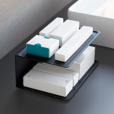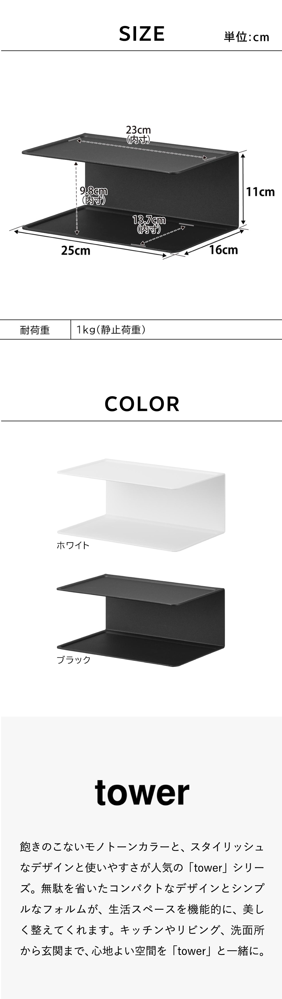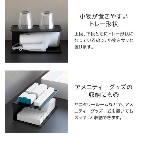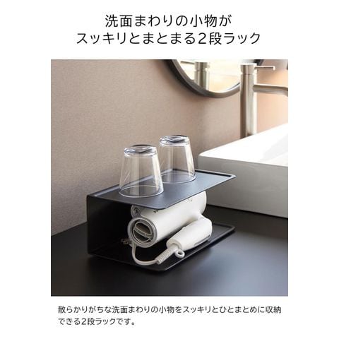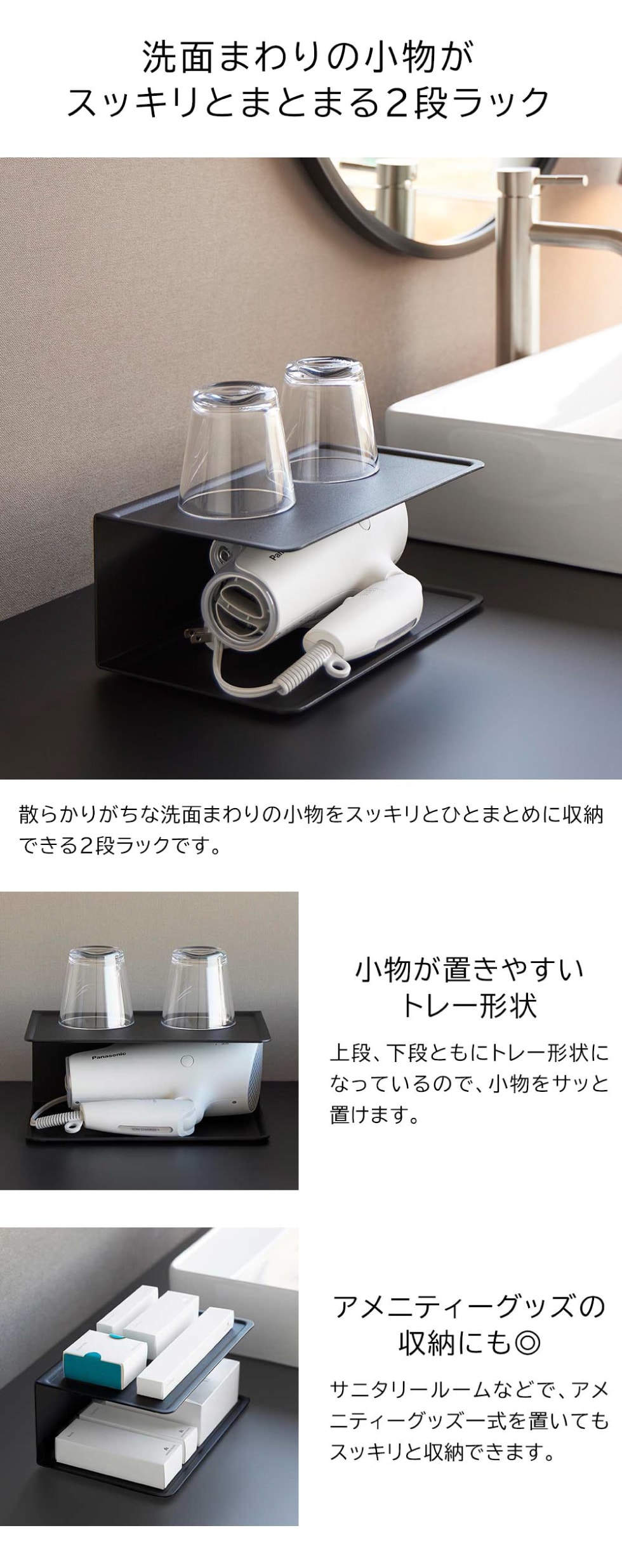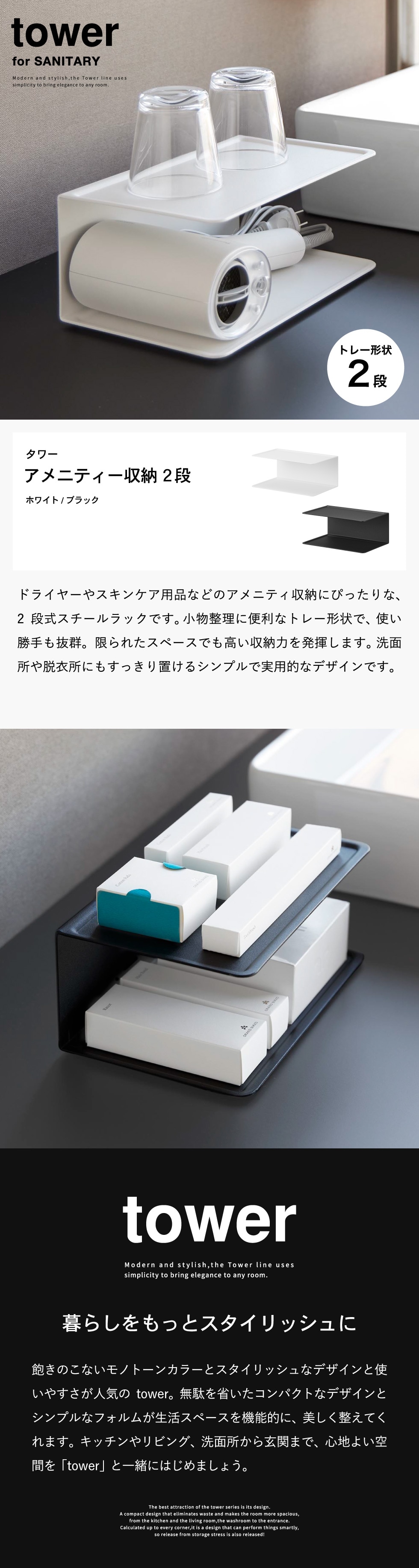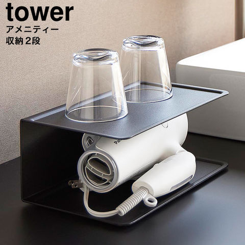 山崎実業 tower アメニティー収納 タワー 2段 公式 10092 10093 送料無料 / 洗面台 洗面所 サニタリールーム 収納 ドライヤー コップ スキンケア グッズ 小物 ラック トレー yamazaki タワーシリーズ / ブラック