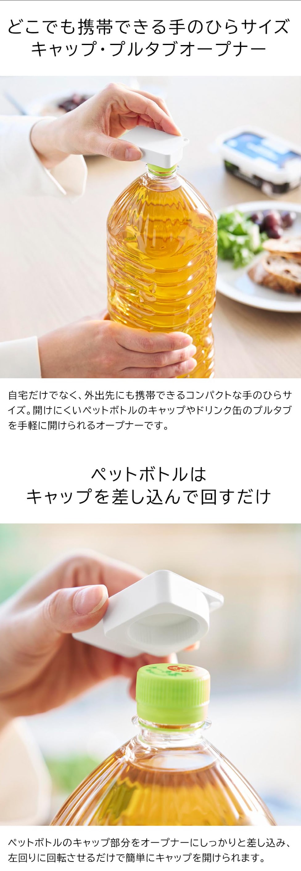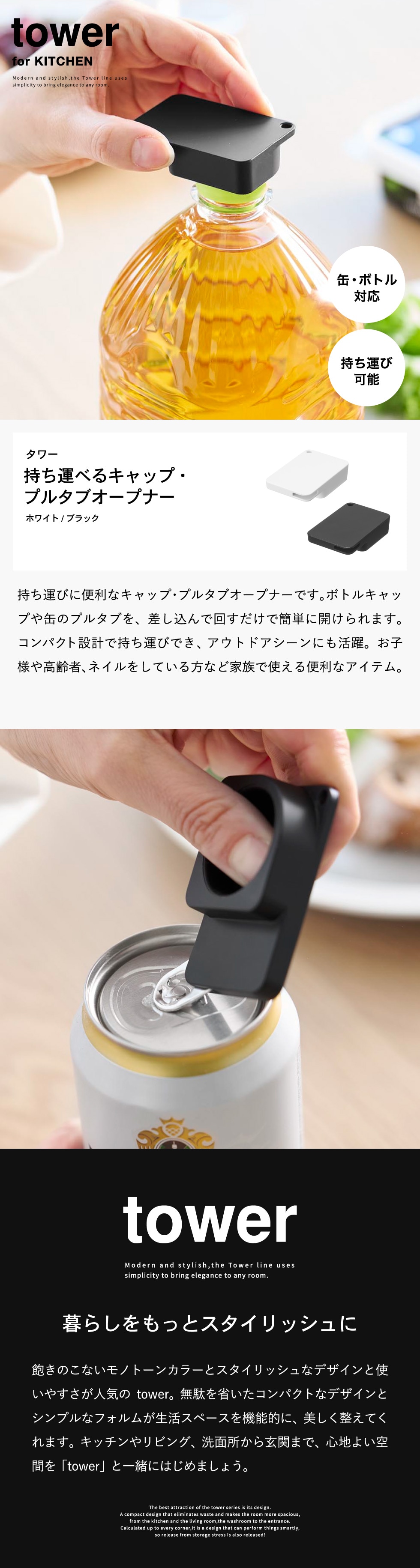山崎実業 tower 持ち運べるキャップ・プルタブオープナー タワー 公式 10201 10202 / ペットボトル 缶 オープナー ふた開け 蓋 ジュース ビール 高齢者 子供 介護用品 キッチン タワーシリーズ JGS / ホワイト