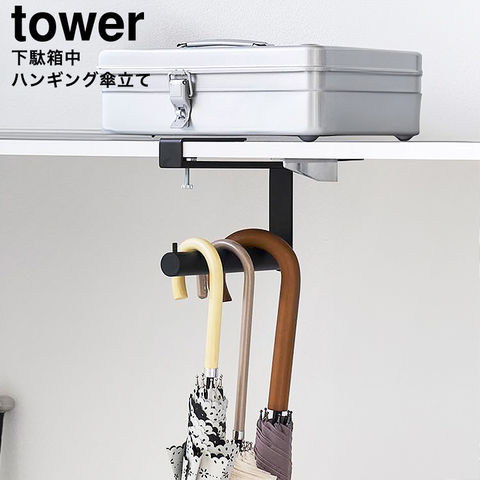 山崎実業 tower 下駄箱中ハンギング傘立て タワー 公式 10080 10081 / 隙間収納 コンパクト 玄関収納 靴箱 シューズクローク 長傘 折り畳み傘 レインコート リュック yamazaki / ブラック