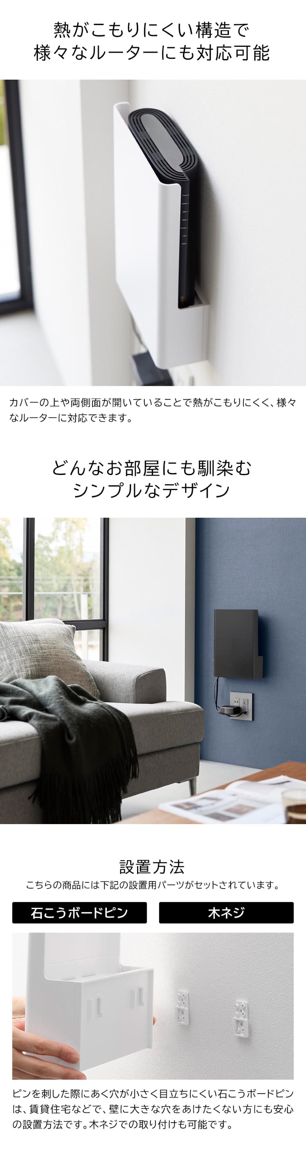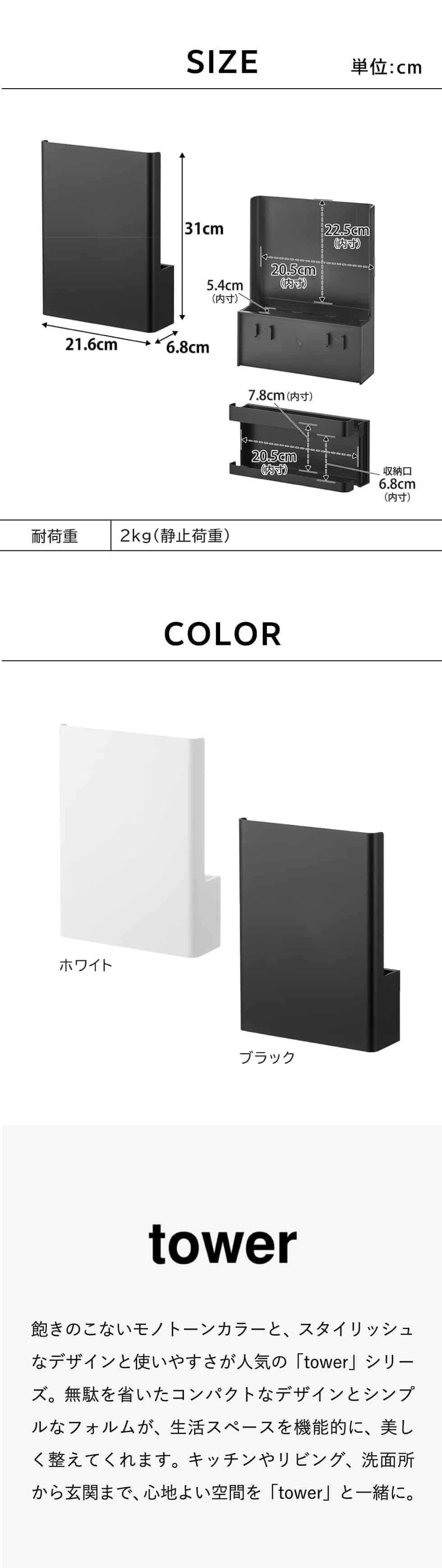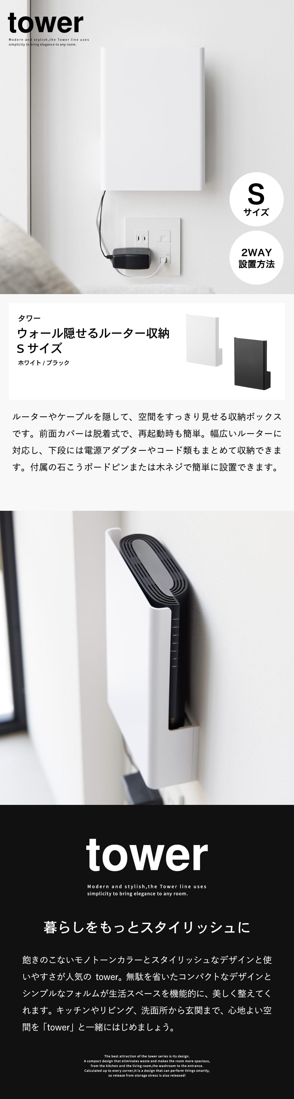 山崎実業 tower ウォール隠せるルーター収納 タワー Sサイズ 石こうボード壁対応 公式 10074 10075 送料無料 / ケーブル カバー ボックス ケース 壁掛け 壁面収納 浮かせる収納 タワーシリーズ yamazaki JGS / ブラック