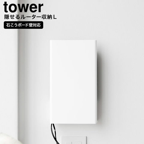 山崎実業 tower ウォール隠せるルーター収納 タワー Lサイズ 石こうボード壁対応 公式 10076 10077 送料無料 / ケーブル カバー ボックス ケース 壁掛け 壁面収納 浮かせる収納 タワーシリーズ yamazaki JGS / ホワイト
