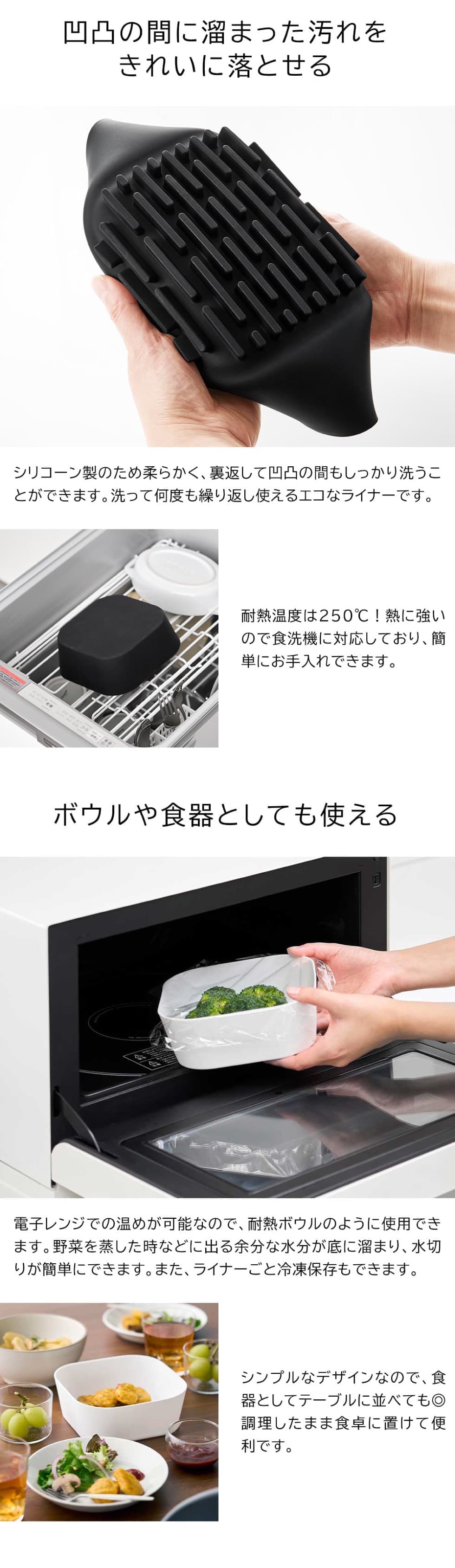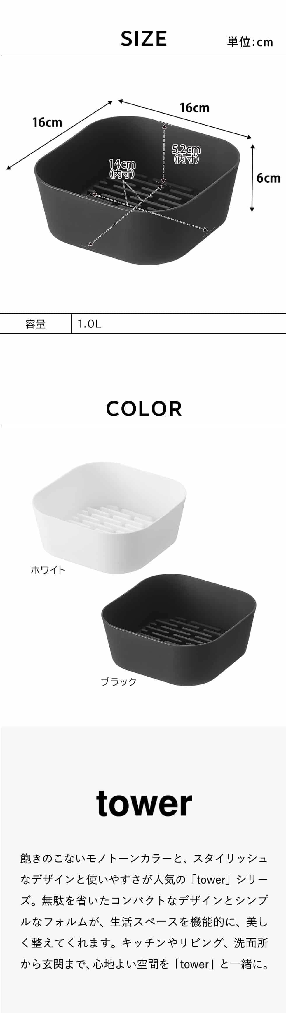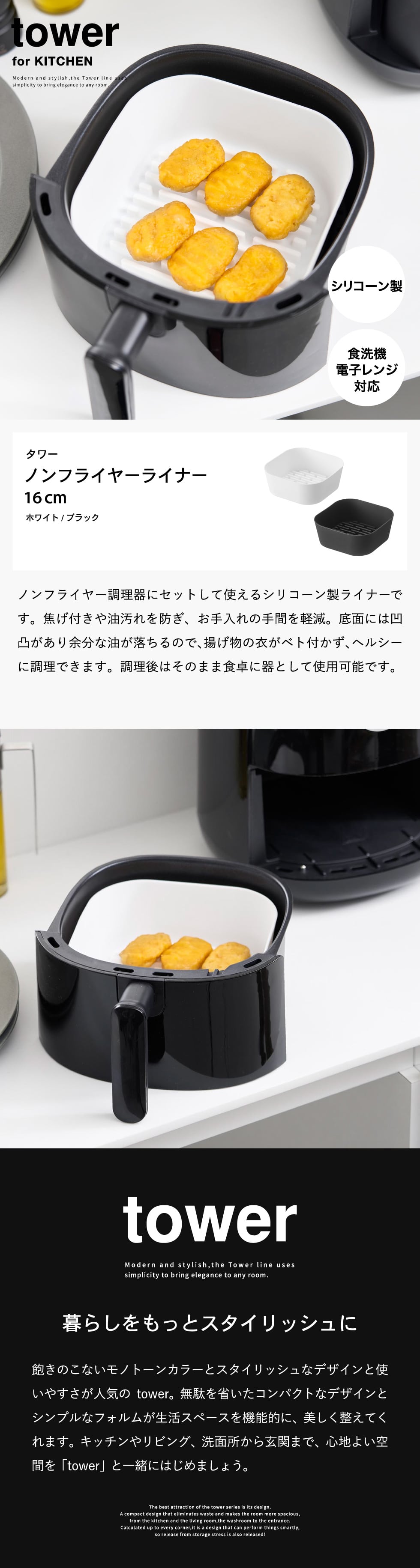 山崎実業 tower ノンフライヤーライナー タワー 16cm 公式 1.0L 10159 10160 / 電気フライヤー エアフライヤー クッキングマット 皿 シリコン シリコーン 食洗機 電子レンジ 対応 yamazaki JGS / ブラック