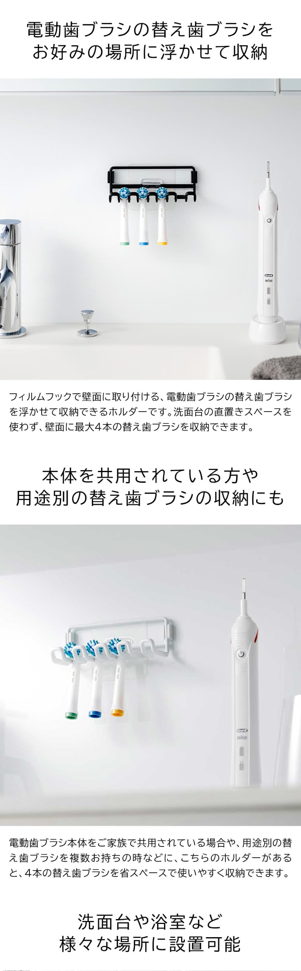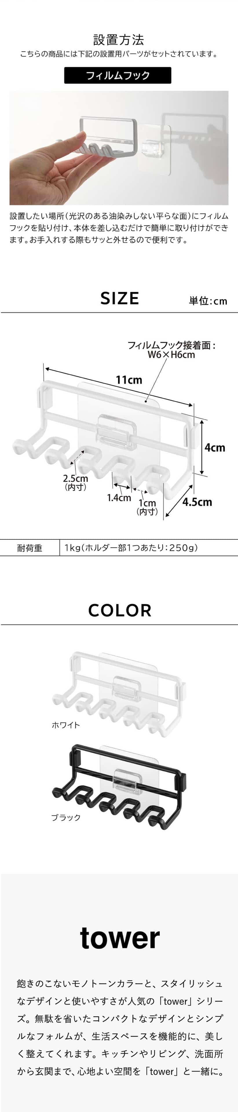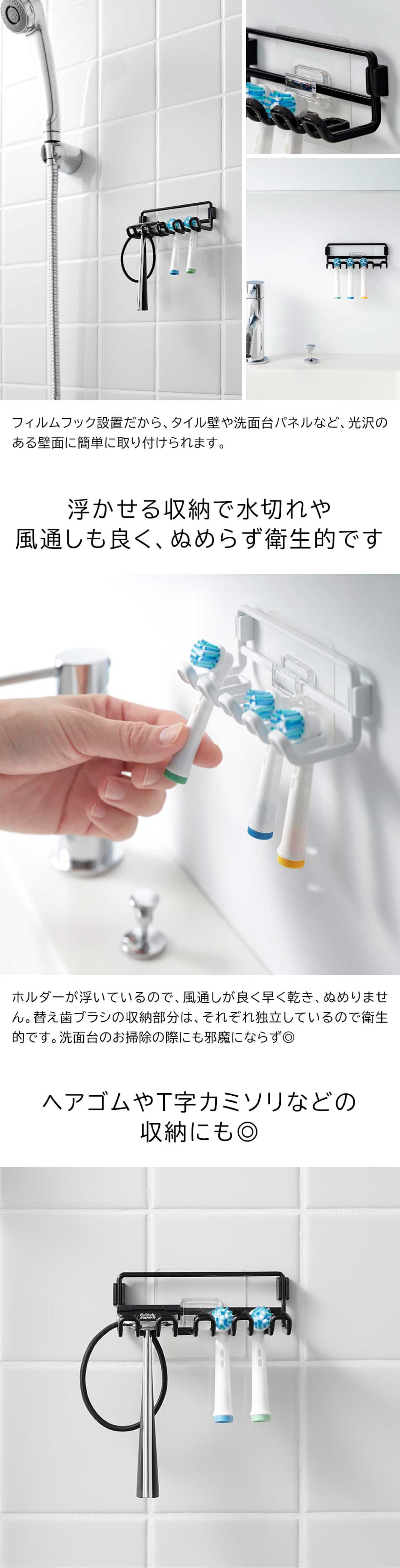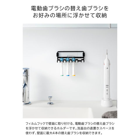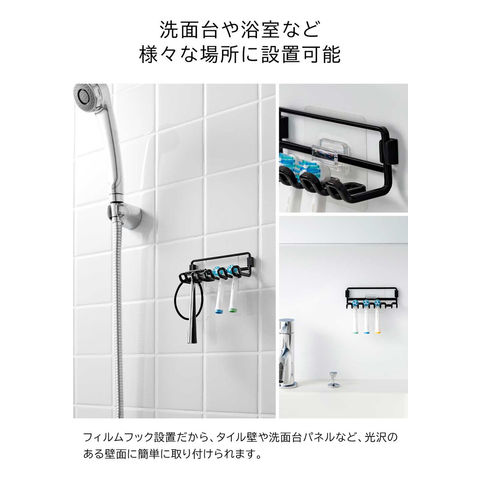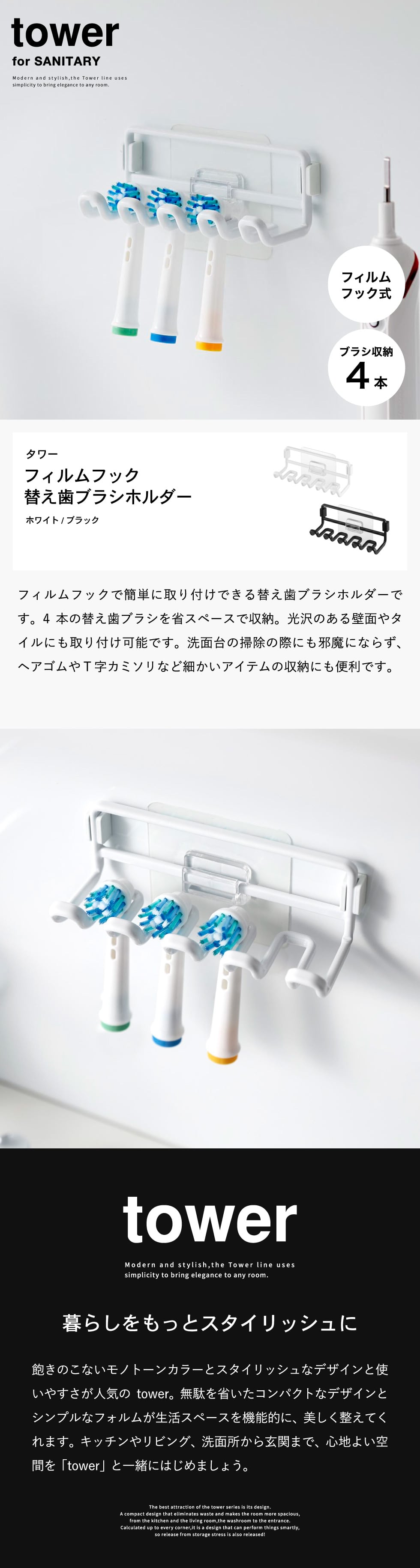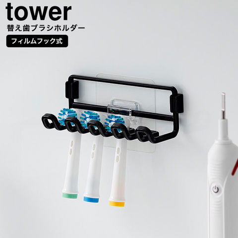 山崎実業 tower フィルムフック替え歯ブラシホルダー タワー 公式 10223 10224 / 電動歯ブラシ 替えブラシ 歯ブラシ立て 歯ブラシ置き 洗面所 浮かせる収納 yamazaki タワーシリーズ / ブラック