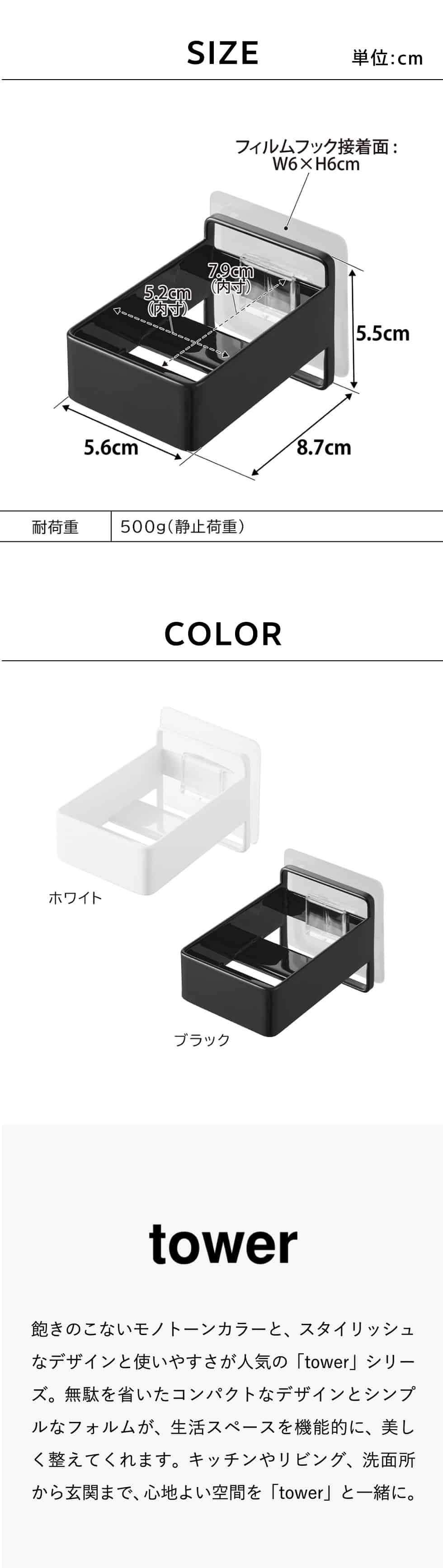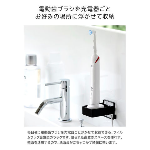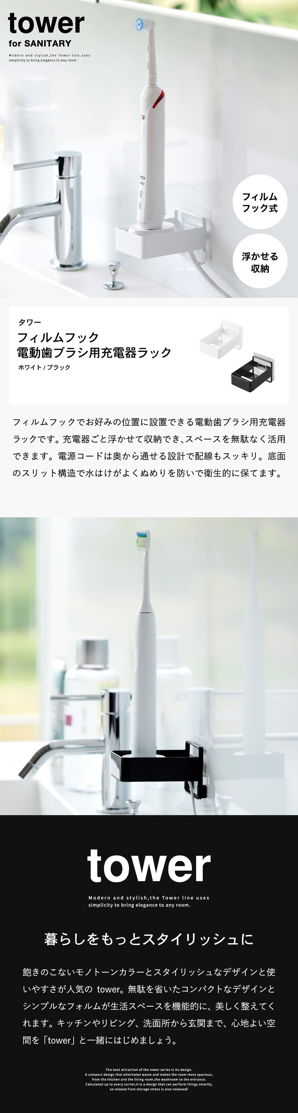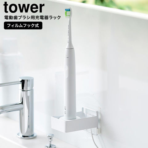 山崎実業 tower フィルムフック電動歯ブラシ用充電器ラック タワー 公式 10225 10226 / 電動歯ブラシ置き 電動歯ブラシ立て 洗面所 浮かせる収納 壁面収納 yamazaki タワーシリーズ / ホワイト