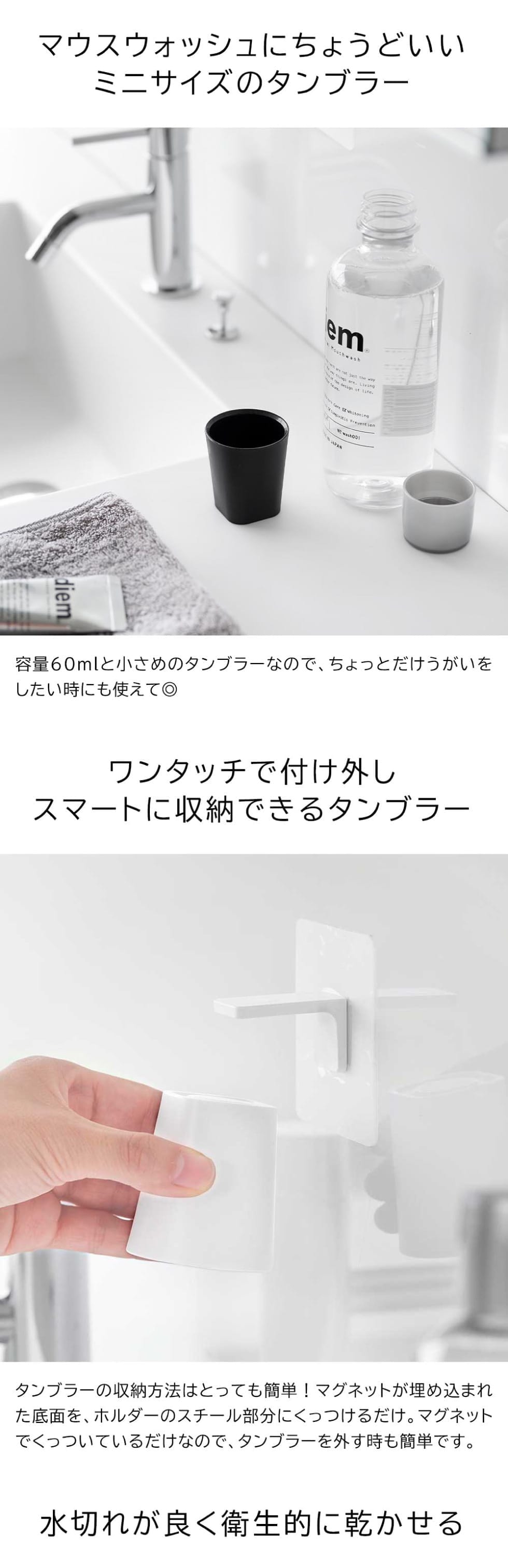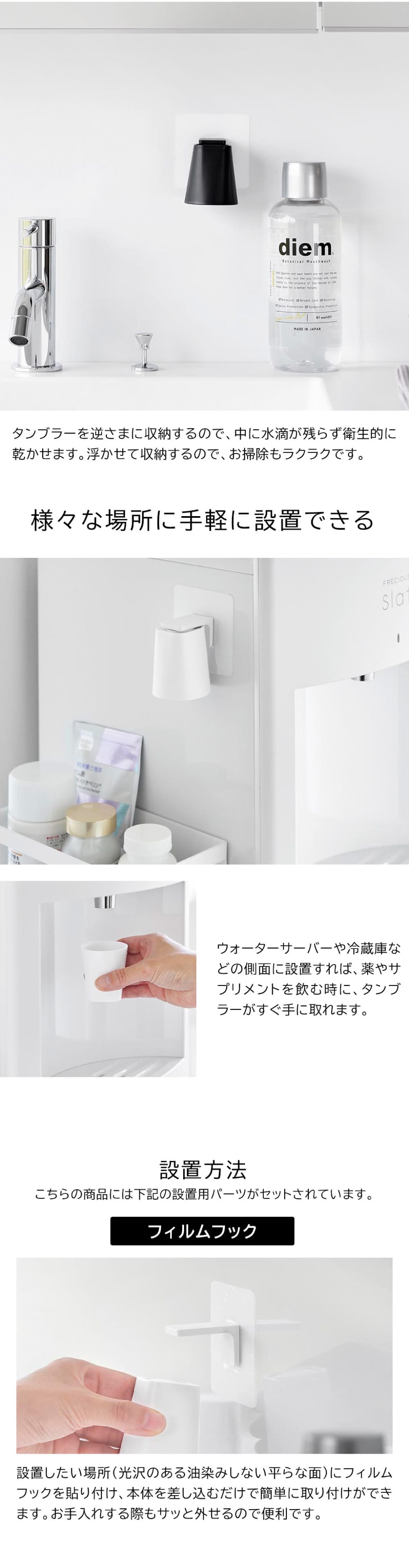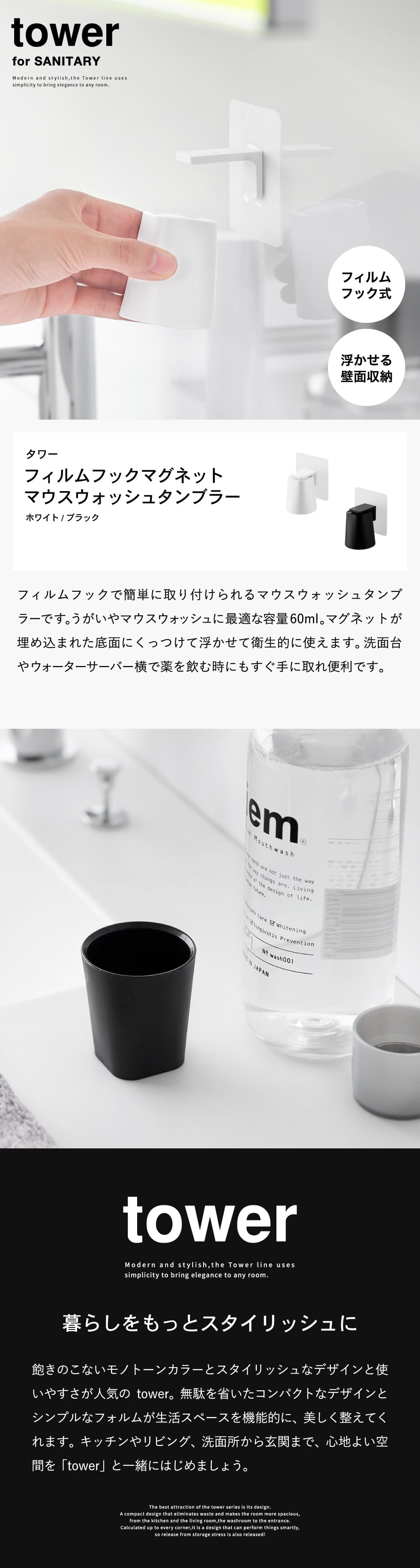 山崎実業 tower フィルムフックマグネットマウスウォッシュタンブラー タワー 公式 10131 10132 / 洗口液 うがいコップ 口臭対策 口臭ケア 虫歯予防 洗面所 洗面台 浮かせて収納 yamazaki JGS / ブラック