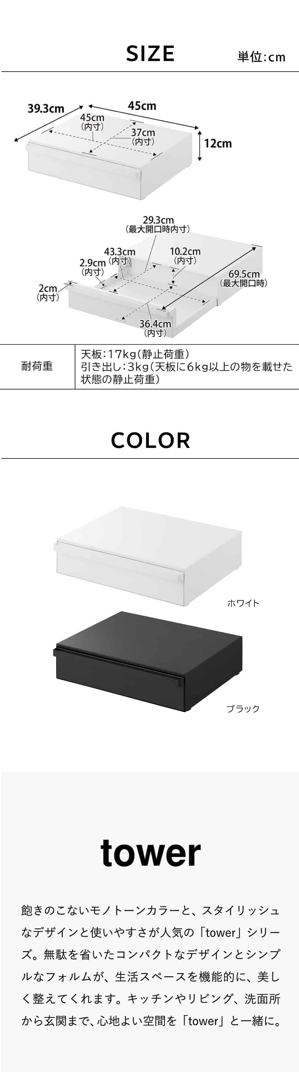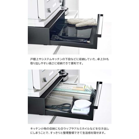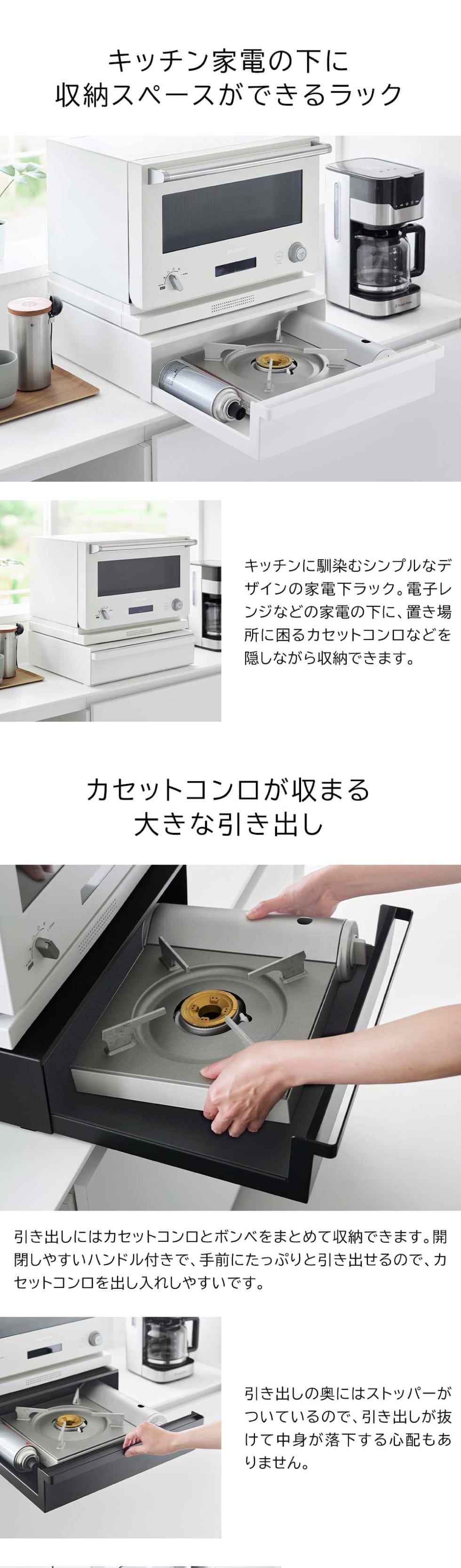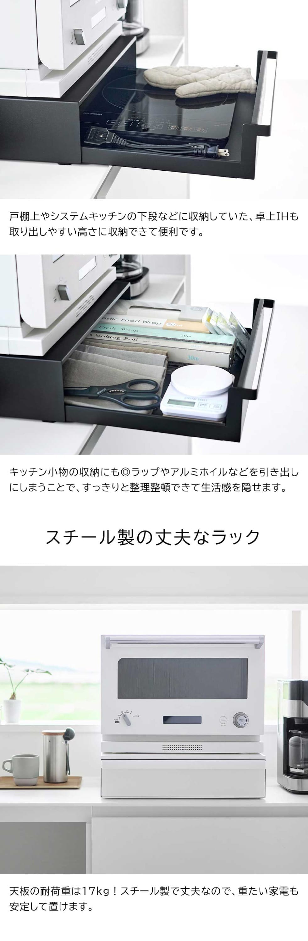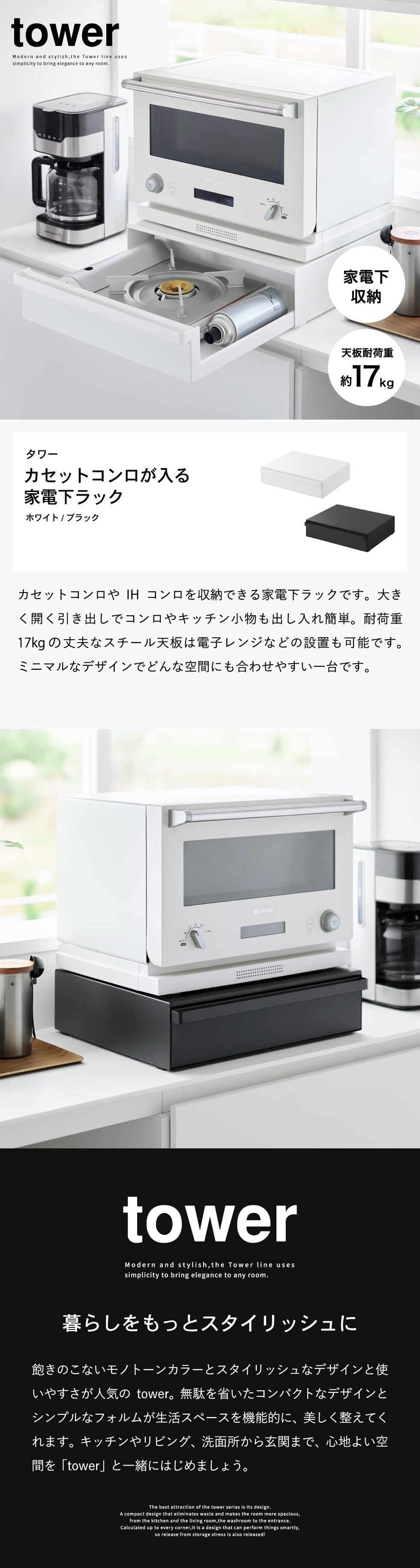 山崎実業 tower カセットコンロが入る家電下ラック タワー 1段 公式 10197 10198 送料無料 / 卓上IHコンロ 収納ラック 電子レンジ キッチン家電 トレー 引き出し タワーシリーズ yamazaki JGS / ブラック
