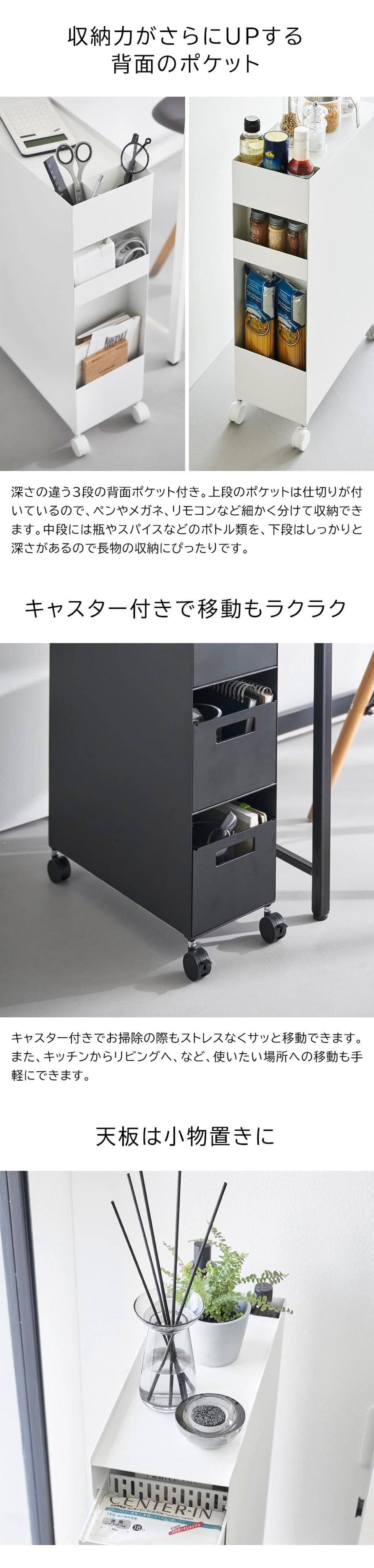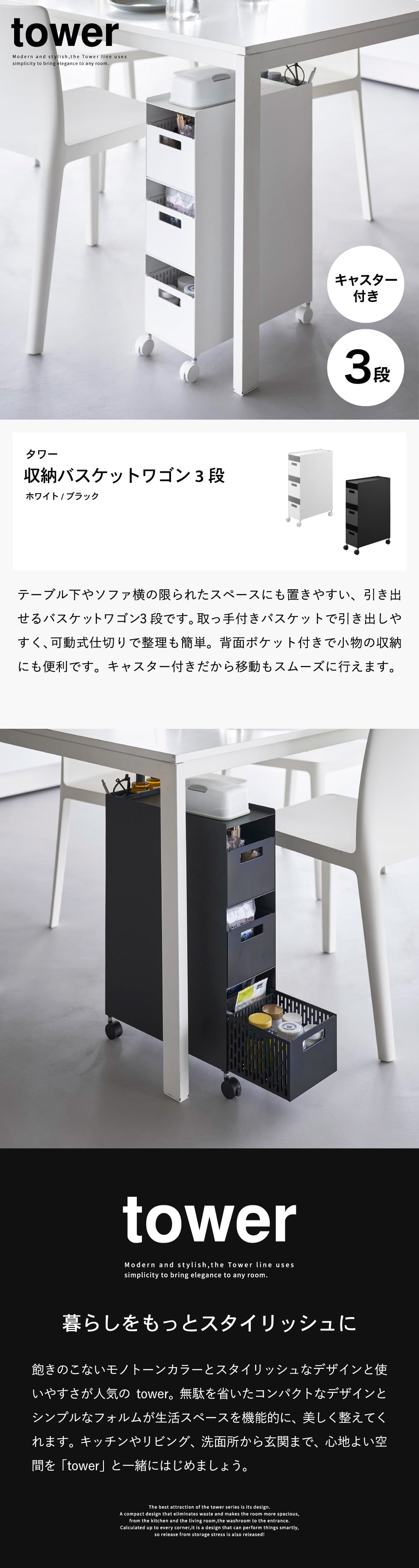 | 収納バスケットワゴン タワー 3段 |
