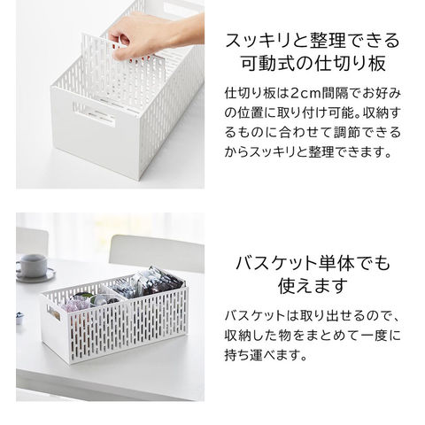 内寸サイズ バスケット1つあたり:W14.5×D31.5×H11.5cm(仕切り板含まず) |