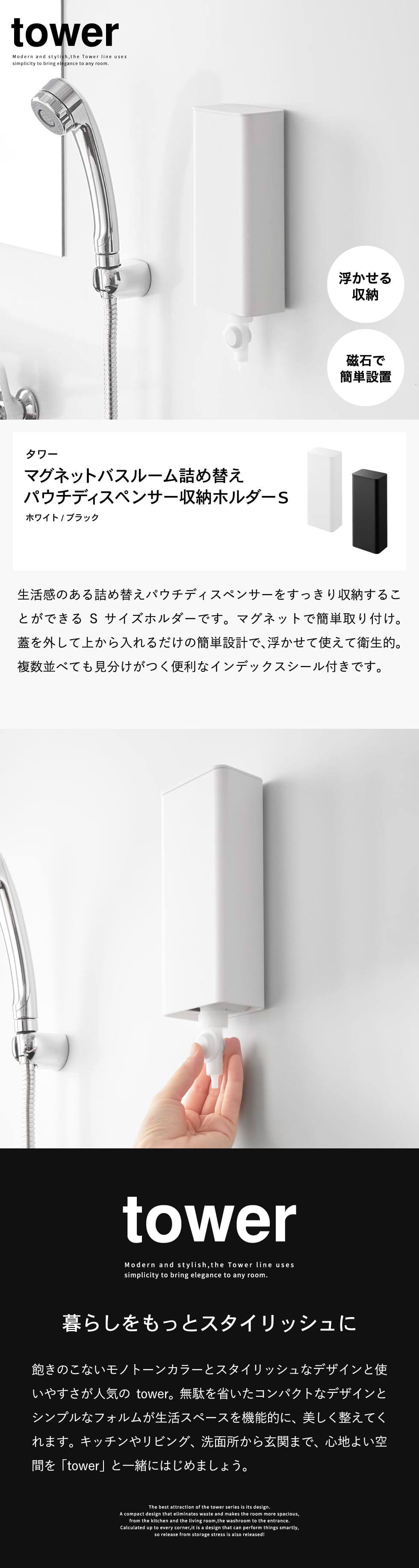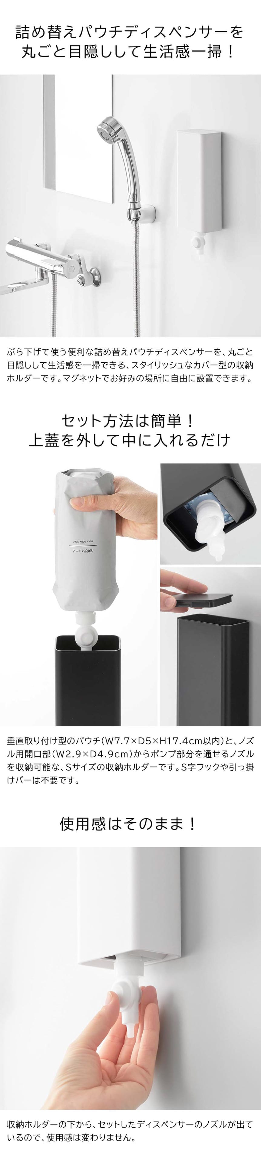 山崎実業 tower マグネットバスルーム詰め替えパウチディスペンサー収納ホルダー タワー S 公式 10139 10140 / 詰め替えパック ノズル ポンプ 吊り下げ 浮かせる収納 yamazaki JGS / ホワイトのレビュー