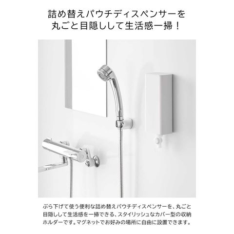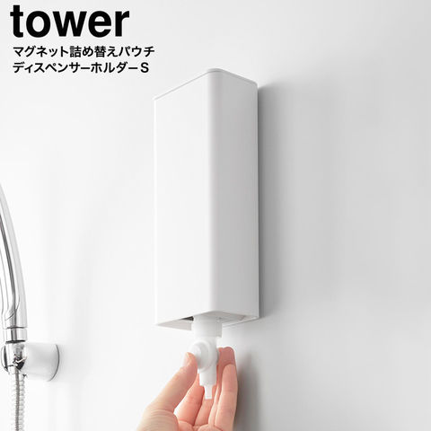 山崎実業 tower マグネットバスルーム詰め替えパウチディスペンサー収納ホルダー タワー S 公式 10139 10140 / 詰め替えパック ノズル ポンプ 吊り下げ 浮かせる収納 yamazaki JGS / ホワイト