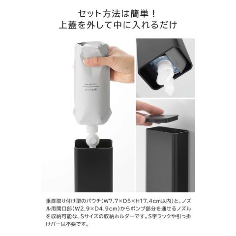 詰め替えパウチ:幅7.7×奥行5×高さ17.4cm以内の垂直取り付けタイプ(内容量の目安:340mL)
