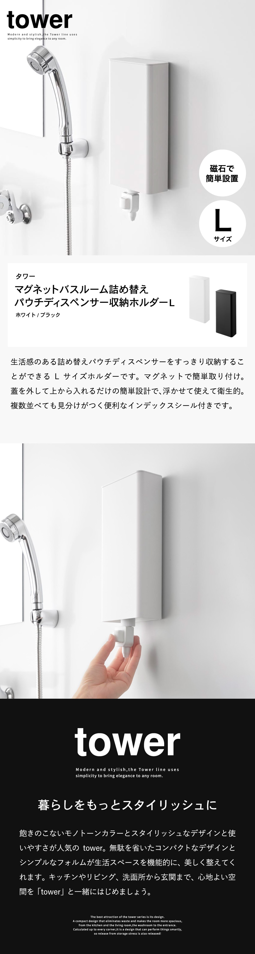 | マグネットバスルーム詰め替えパウチディスペンサー収納ホルダー タワー L |
