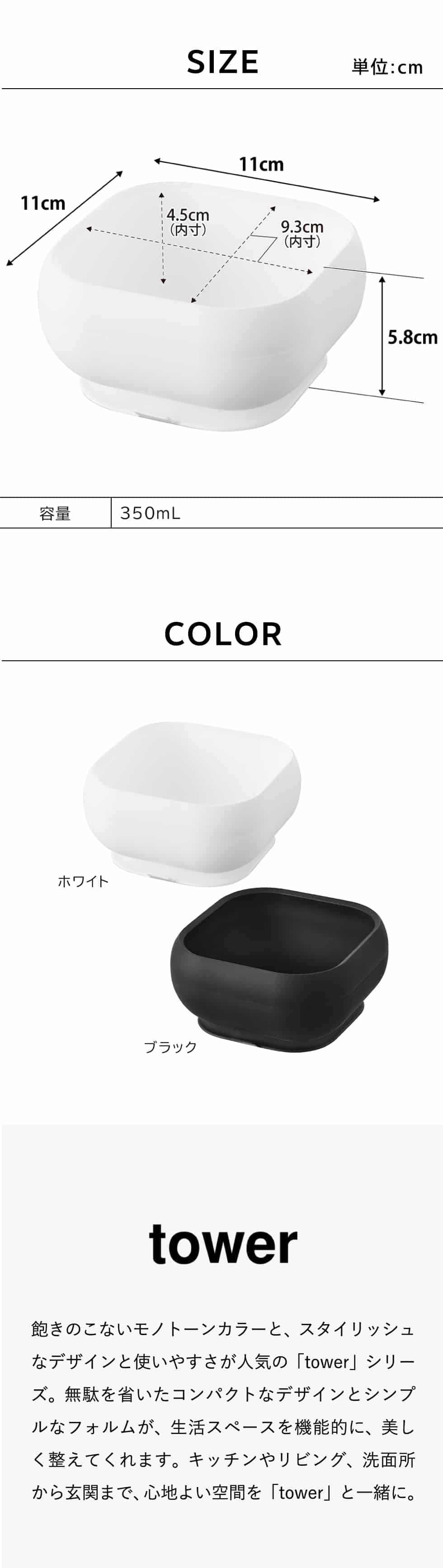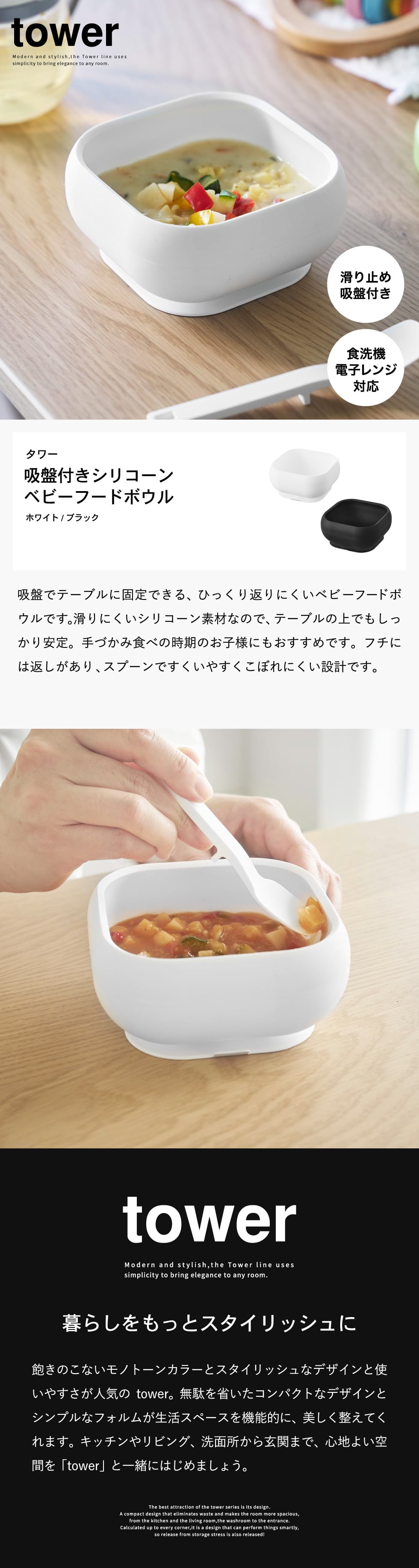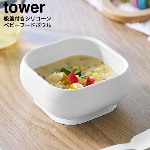 山崎実業 tower 吸盤付きシリコーンベビーフードボウル タワー 公式 10047 10048 / どんぶり お茶碗 お椀 ベビー食器 子供用 食洗機 電子レンジ 冷凍 対応 タワーシリーズ yamazaki JGS / ホワイト