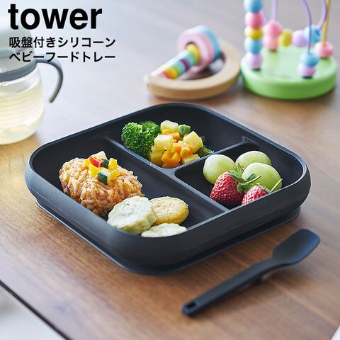 山崎実業 tower 吸盤付きシリコーンベビーフードトレー タワー 公式 10049 10050 送料無料 / プレート お皿 ベビー食器 子供用 食洗機 電子レンジ 冷凍 対応 タワーシリーズ yamazaki JGS / ブラック