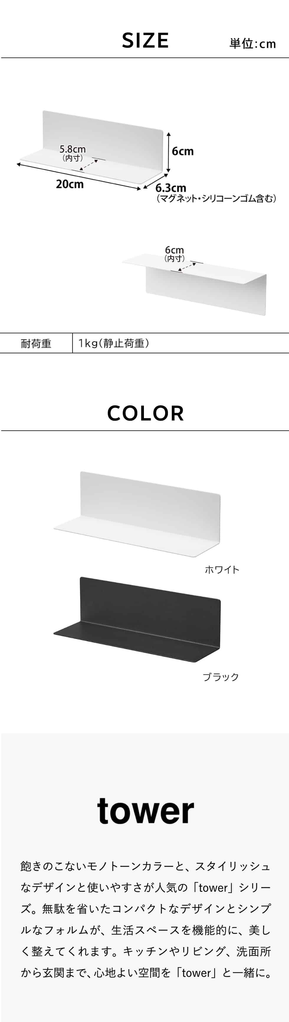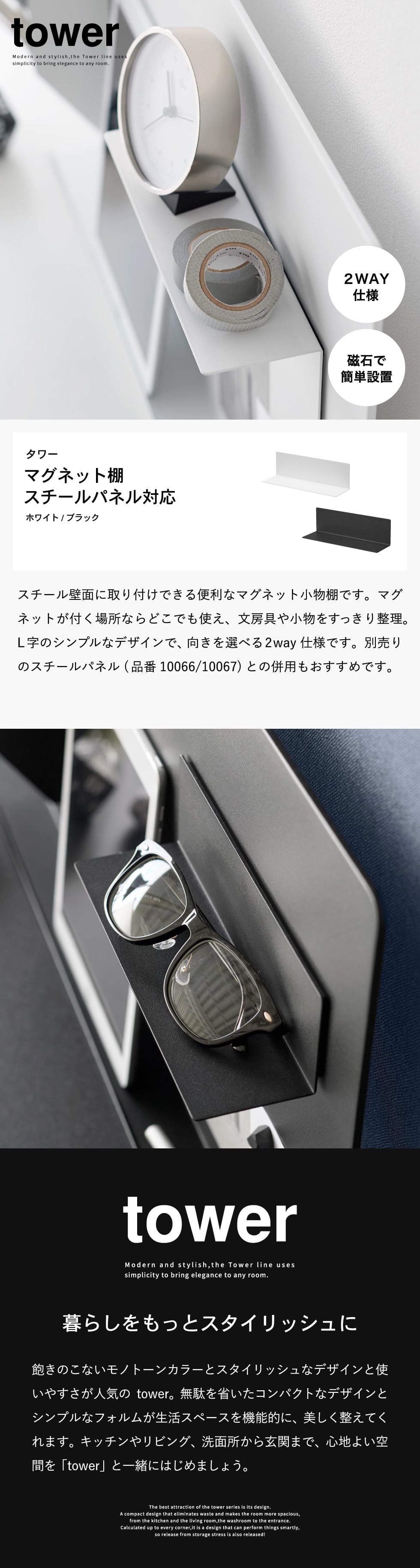 山崎実業 tower マグネット棚 タワー スチールパネル対応 公式 10094 10095 / 浮かせる収納 取り付け棚 小物置き デスク周り 整理整頓 冷蔵庫 洗濯機 ロッカー キャベビネット タワーシリーズ yamazaki JGS / ブラック