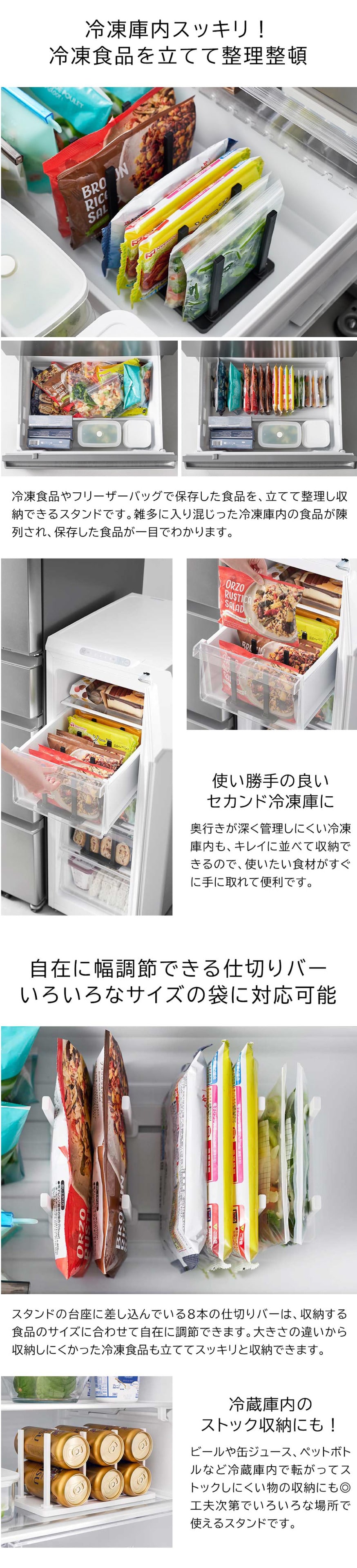 山崎実業 tower 冷凍庫中仕切り調節収納スタンド タワー W27 公式 10102 10103 / 冷凍庫 収納 冷凍食品 立てて収納 冷蔵庫内 ビール 缶ジュース ペットボトル 可動式 タワーシリーズ yamazaki JGS / ブラック