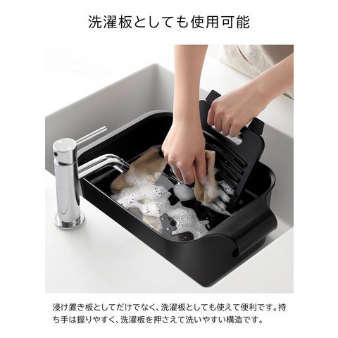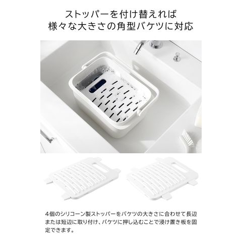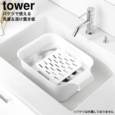 山崎実業 tower バケツで使える洗濯&浸け置き板 タワー 公式 10133 10134 / 洗濯板 せんたく板 つけ置き つけおき 角型 洗濯グッズ 手洗い 予洗い 下洗い 汚れ落とし フック穴 JGS / ホワイト
