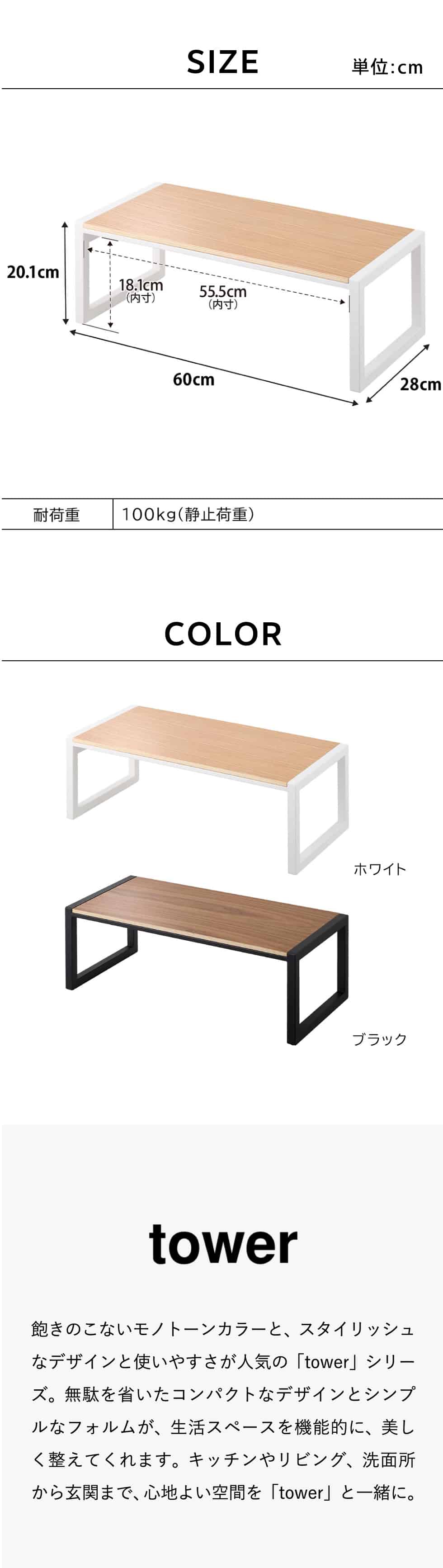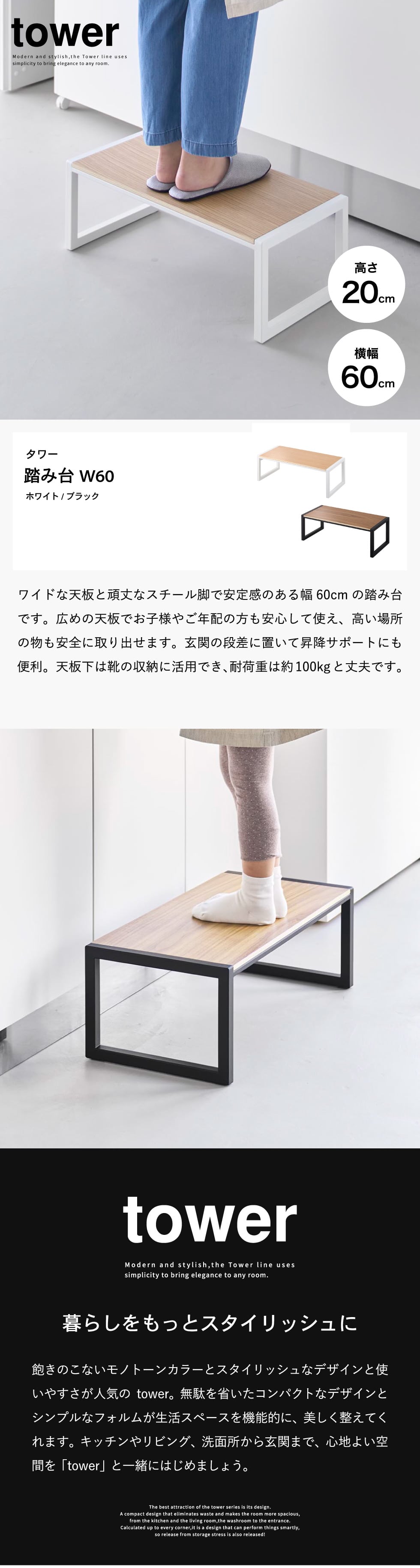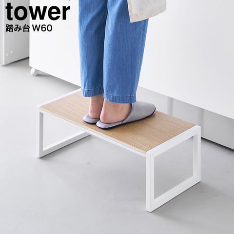 山崎実業 tower 踏み台 タワー W60 公式 10125 10126 送料無料 / 幅60cm 高さ20.1cm ステップ台 スツール キッチン 台所 玄関 洗面所 手洗い トイレ 子供 タワーシリーズ yamazaki JGS / ホワイト