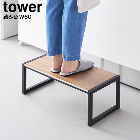 山崎実業 tower 踏み台 タワー W60 公式 10125 10126 送料無料 / 幅60cm 高さ20.1cm ステップ台 スツール キッチン 台所 玄関 洗面所 手洗い トイレ 子供 タワーシリーズ yamazaki JGS / ブラック