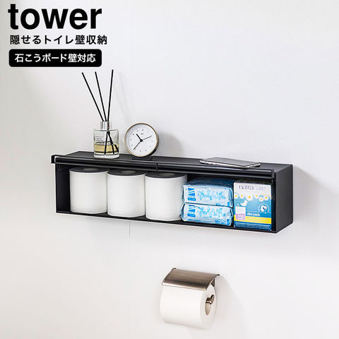 山崎実業 tower ウォール隠せるトイレ壁収納 タワー 石こうボード壁対応 公式 10068 10069 送料無料 / 幅60cm トイレ ラック 壁掛け トイレットペーパー トイレ用品 yamazaki JGS / ブラック