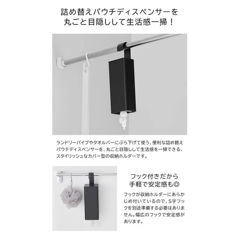 山崎実業 tower 引っ掛けバスルーム詰め替えパウチディスペンサー収納ホルダー タワー S 公式 10149 10150 / 詰め替えパック ボトル ホルダー バスルーム お風呂 yamazaki タワーシリーズ JGS / ブラック