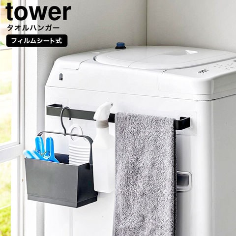 山崎実業 tower フィルムシートタオルハンガー タワー W43 公式 10023 10024 / 43cm タオル掛け 収納 引っ掛け ハンガーバー キッチンパネル タイル 洗面台 お風呂 タワーシリーズ yamazaki JGS / ブラック